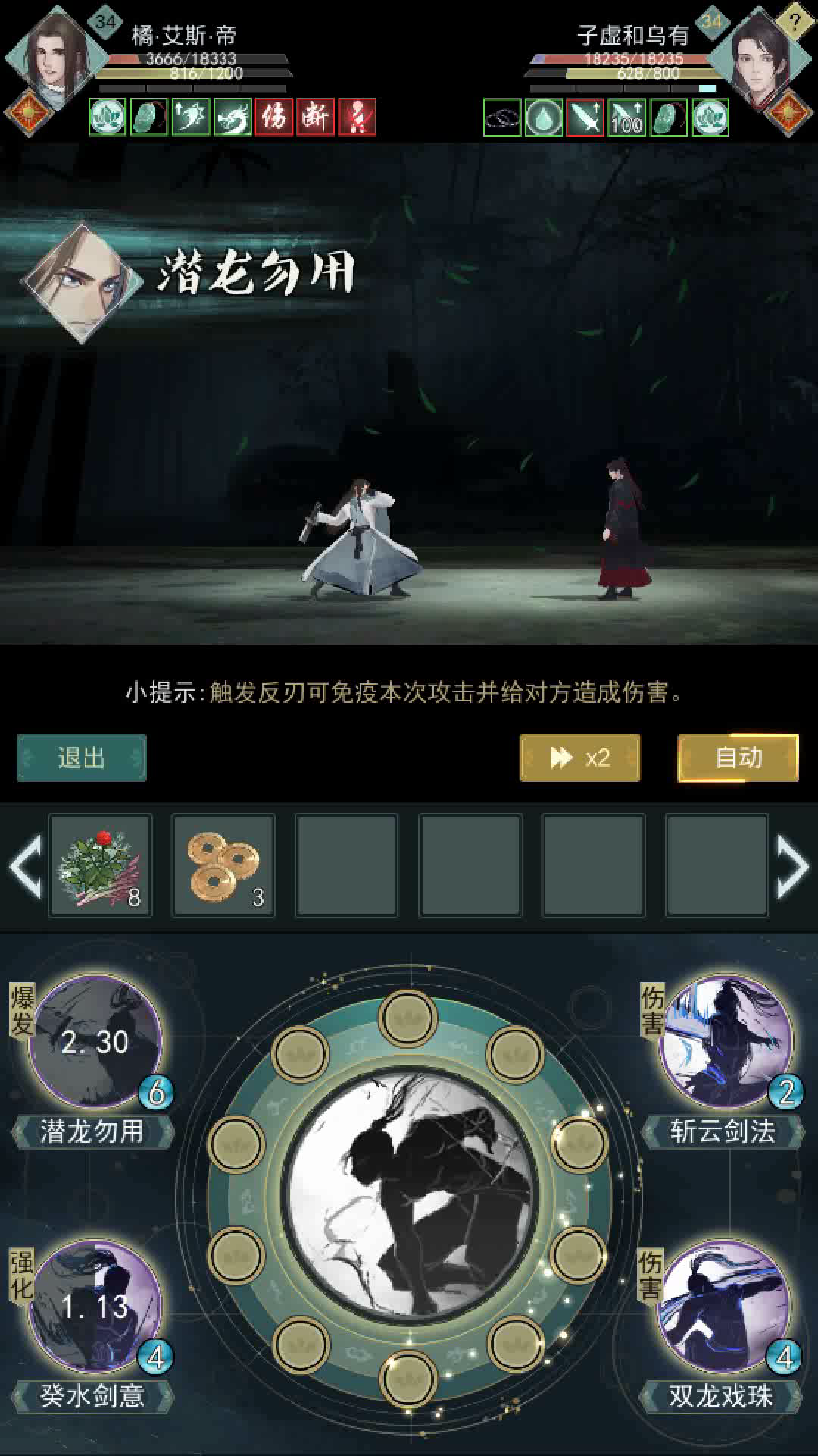 扛不住两波攻击时,可以放弃癸水技能, 技能顺序:斩云→枫叶舞→潜龙→斩云→潜龙→双龙1200基本破定,实在不行再补个斩云, 技能衔接跟武器重量有关(我的武器170锋)具体自行尝试。 4阶葵水是不想了,直接赌斩云暴击。