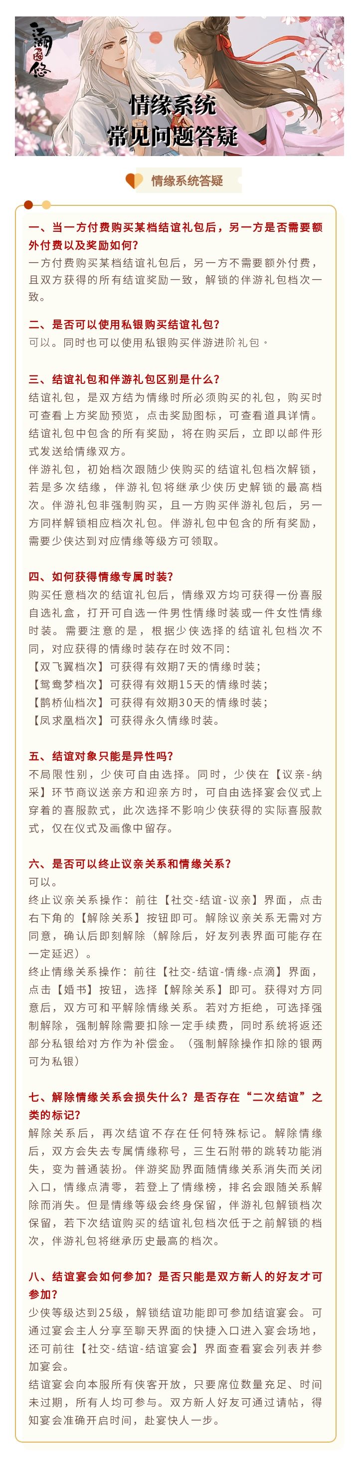 《江湖悠悠》情缘系统常见问题答疑
