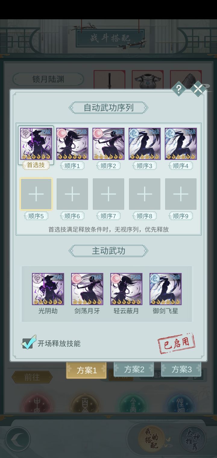 珠玉在前,虽然我不是什么大佬,显得有班门弄斧之嫌,但玩锁月就是要有继往开来,一往无前的气势不是吗,哈哈哈,开玩笑的,进入正题吧。“为天地立心,为生民立命,为往圣继绝学,为万世开太平”前言请不要相信百度上的攻略,那都是一年前的,现在的锁月不用手动,自动就能越级打怪,同练度下更是无敌手(前期),遇到稍微难点的,手动更强!只需一阶武学就能连招丝滑,伤害可观,可以说是0氪,月卡党的首选。接下来会说