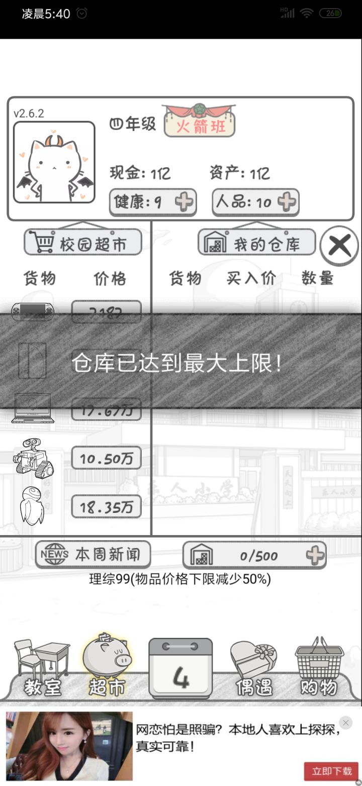 昨天玩了一天让后发现我到六年级以后不会重启全部人的亲密都刷满了,直接刷到了一百亿多,以为是bug ,结果今天来看帖子看了一下各位的帖子,发现你们都会重启删档,当我想嘲笑你们的时候打开了我的游戏结果也删档了,不过我所有女朋友的buff还在像什么几周增加3个仓库都在,真的烦啊