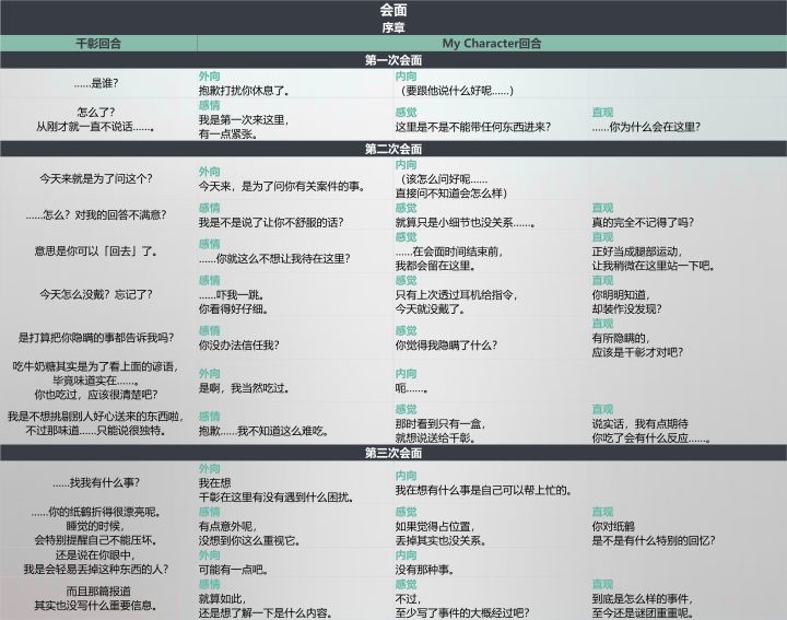 3.所有会面事件的内容均按照游戏内顺序排列,没有出现的会面