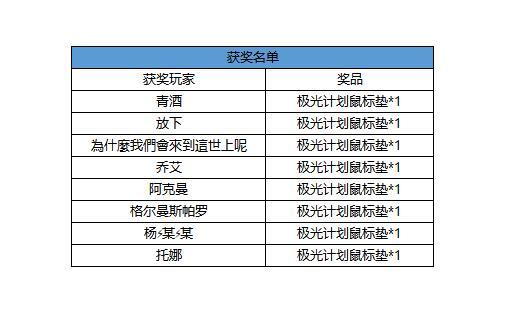铛铛铛!恭喜下方表格中的勇士获奖,烦请各位获奖的勇士于11月26日之前加极光活动QQ群:850031017,(添加群备注平台昵称),进群后联系:群主(柠檬),提交获奖信息,谢谢。注:逾期将视为主动放弃奖品,不再进行补发哦!----------------------在这段探索旅程中,勇士都遇到过什么有趣的事情呢?瑞秋可是很好奇呢!那么瑞秋在此发布征集令!勇士们快来分享在探索时遇到的趣味时刻吧