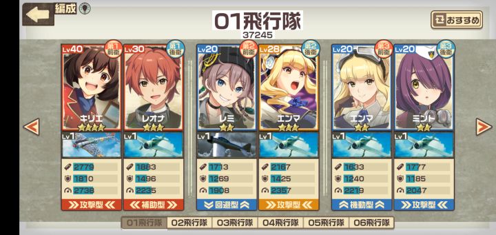 37245的战斗力,编队是系统自动的,现在推图基本打不过。每日刷飞机装备和松饼的关卡只能打得过初级。飞机没法造,没有工具,困难图打不过。。。唯一的四星就是女主,签到七天白给的,战斗力全是她撑起来。剩下的都是十连抽的一星,都是二十级的。在弃坑的边缘徘徊