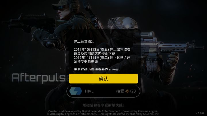 新版的电磁风暴已经出来了,而且右下角的GAMEVIL标志已经没有了,GAMEVIL只是游戏的发行商而已,游戏的制作商是Digital Legends这个工作室还出过一个叫Respawnablse的游戏,因为电磁风暴是晚出的所以和它的玩法很像,估计是和GAMEVIL的合约解除了,所以以后估计就不能用HIVE登录了,因为HIVE是GAMEVIL的东西,原厂运营,总该良心了吧
