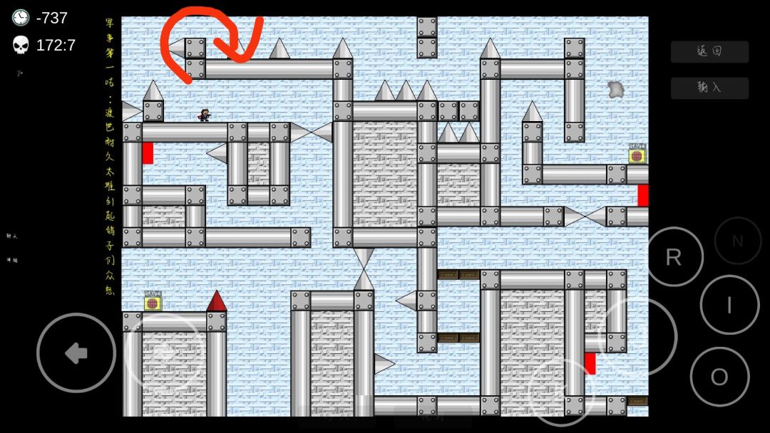 NANGS9隐藏攻略,这里的刺就是葱 全都是石姬的活🌚不看讲解就看图三画的大致路线 ———————“华丽”的分割线—————————— 从左到右有三个开关 左下的葱逆时针旋转,触发最左面的机关后顺时针旋转 然后试着不磕脑袋调到存档上 左上的葱按顺时针旋转 记得再存档上的砖站一下起二段跳 右上的葱转的最快,看好时机到底下的一颗葱旁边 找好时机跳过去后再去触发开关 然后右上的葱会顺时针转 —————————————————————————— 贴心注意:看图二,如果你直接越过去了你就会与妙脆角失之交臂 —————————————————————————— 要我也不爱看文字讲解,图三就是大致路线🌚