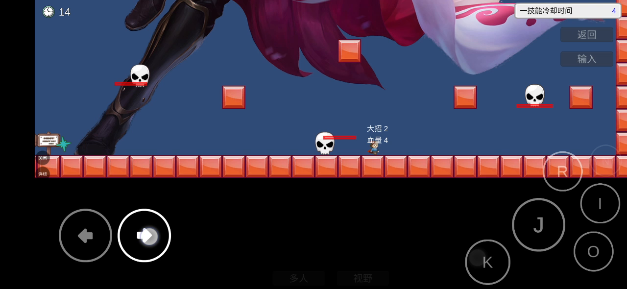 😂实现了王者荣耀角色李白和露娜的技能。i技能普攻(伤害1);k技能为一技能;o技能为二技能;n技能(小跳按键)大招。李白需要一技能或普攻到怪物4下才能解封大战,露娜有标记,不过露娜刷新大招有bug。 我设置了可以复刻,有兴趣的可以看看,这是好久前的代码更新版本后一堆bug,今天无聊重新修复了bug😂。