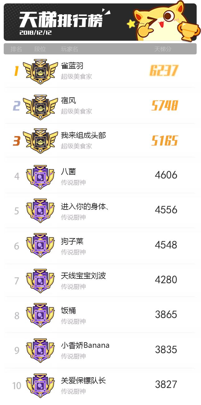 周末的米娜桑果然战斗力爆表,已有三名玩家突破4000分,超级美食家的称号已近在咫尺! 以上便是《梦幻岛大冒险》最新天梯排行,接下来让我们期待“超级美食家”的殊荣将由谁纳入囊中吧!