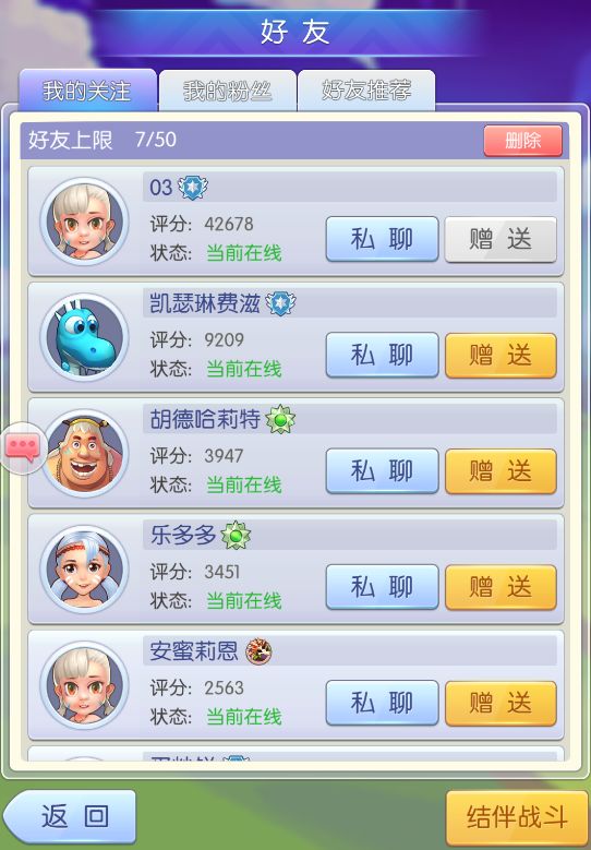 现在游戏中的社交系统可谓是五花八门,而《石器大陆》真正地做到了游戏社交提升游戏内容,让玩家之间能够在游戏中通过交友来“提升”自身实力。说到这里就不得不提游戏中一个快速的经验获得的方式——结伴战斗。在好友界面,你能够向好友赠送礼物,在这之后会获得相应的爱心值,并增加好友的人气值,消耗一定数量的爱心值后您能够和好友进行结伴战斗,结伴战斗将会和好友一同进行战斗并获得加速效果,在此期间可以快速进行主线