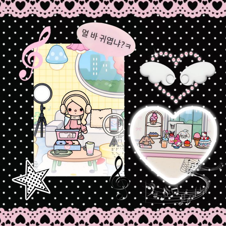 翻图库的时候突然就翻到了,原来是我忘了发,这个是仿的吃漂亮饭拍照图,更新了我很喜欢的三丽鸥呀#托卡生活 #托卡世界