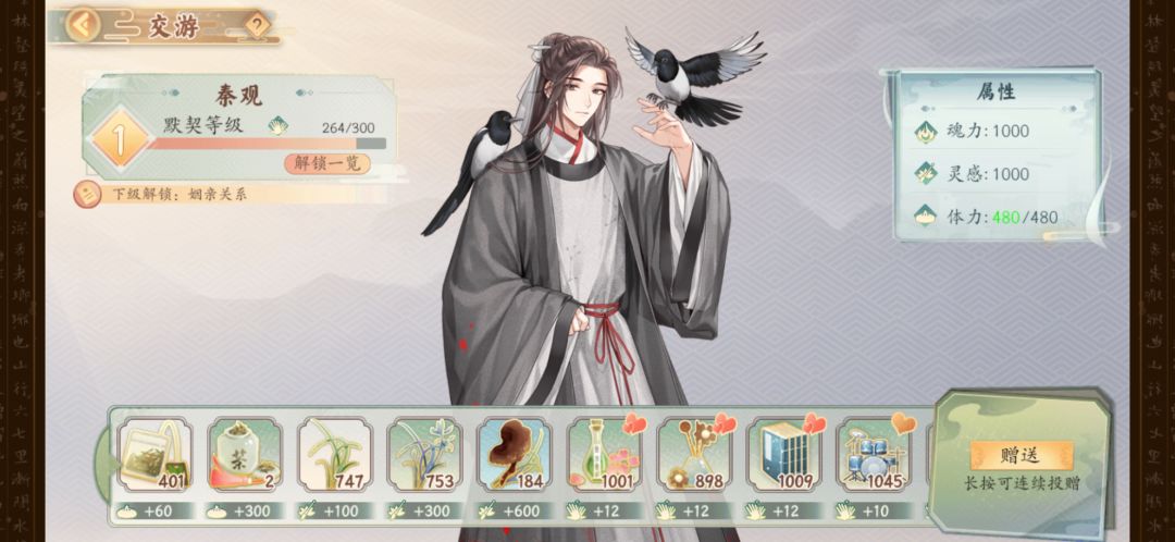 攻略 骆宾王(观光) 好感礼物:游戏机、架子鼓、高等数算