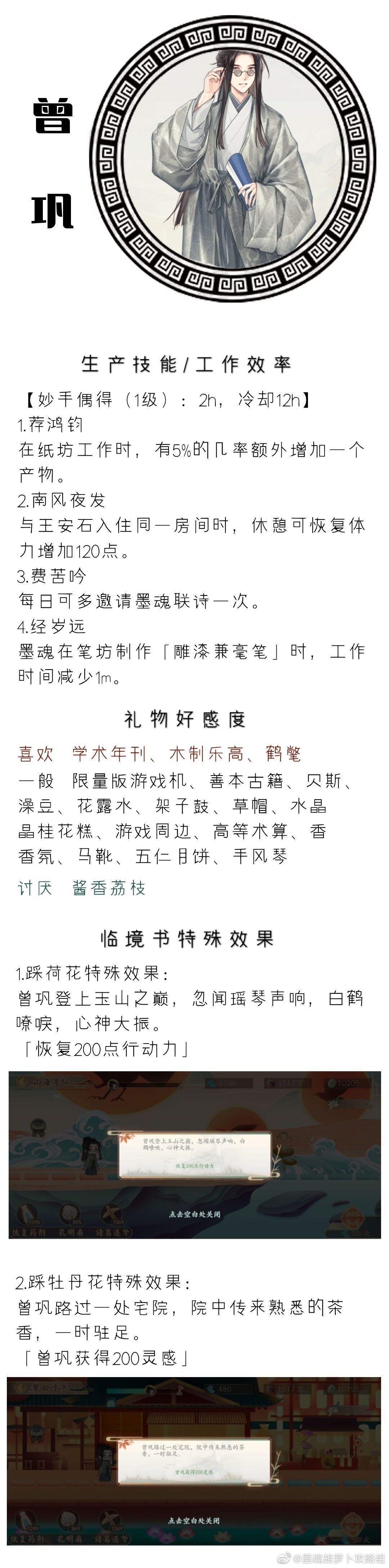 来写个前期攻略吧 第一次写嘿嘿嘿 前期诗篇最好选择王安石 因为王安石的技能是放灯加成20% 前期七天奖励要打满 最好西园雅集和临镜书要做完 我后面几天拼死拼活才搞满240真的很累 然后一步步来 最好是刷华胥灯 后面在王安石的加成下一盏灯能拿到1w8-2w2的建材 前期资源少可以放一次夜航船 华胥灯一定要搞 我最高华胥灯20%加成放过四万建材的灯 房间一定要搞装修 舒适度越高可以恢复体力更快 也可以