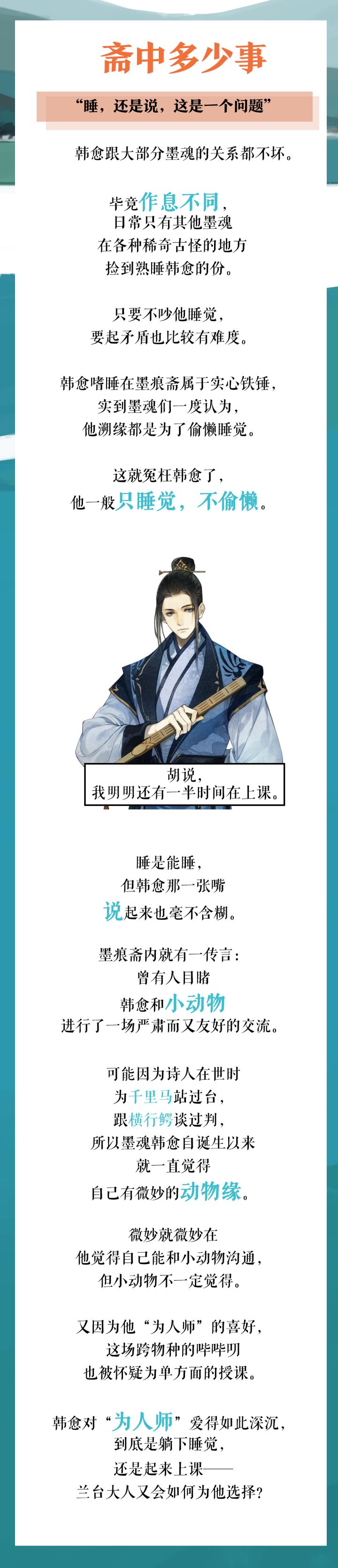 七百年前,墨魂柳永因未知原因,陷入了长久的沉睡。七百年间兰台更迭、全斋执守,却始终无法唤起墨魂柳永一丝一毫的知觉。墨痕斋唯一睡美魂到底为何陷入沉睡?这一次,他又能否觉醒归来——最后依旧是无字版壁纸,诸位兰台大人可以自取~