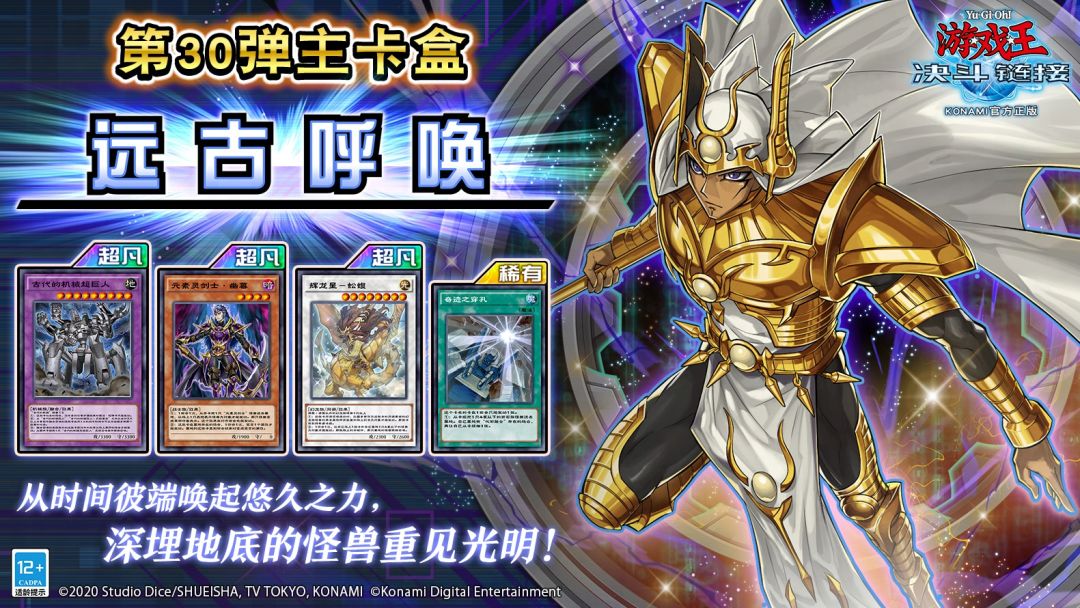 《远古呼唤》带来了古老且忠诚的神官力量「守护神官 马哈德」,还有「古代的机械」以及「化石」两大以融合为主系列的全新卡片! 还有传说中的幻龙「龙星」、活用属性变化的「元素灵剑士」、照映在光与暗双面世界的「梦魔镜」系列! 官网全卡表已更新,详情请见→https://ygo.163.com/card/list.html?id=82 「守护神官 马哈德」 通过抽卡将此卡抽到时,给对方观看此卡,便能特殊召唤