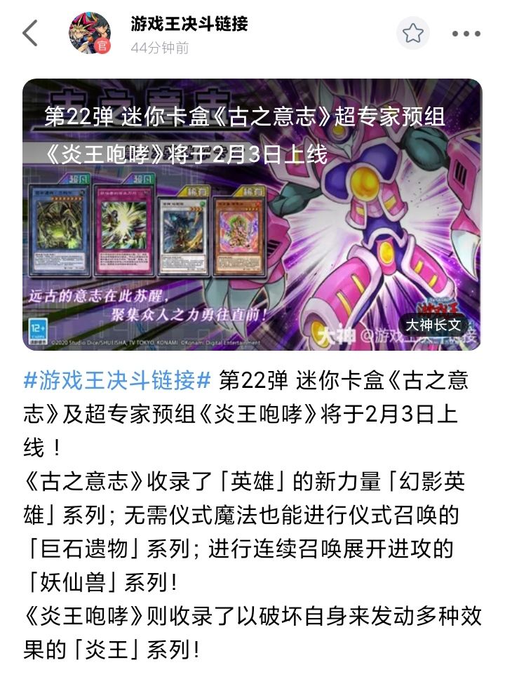 农历牛年大年初二,#游戏王牛什么#?快来游戏王决斗链接微博分享你在《游戏王:决斗链接》打牌最牛瞬间以及精彩“牛”人操作吧! ★在游戏王决斗链接微博转发同名内容并分享你的最“牛”瞬间,将挑选6位决斗者获得128决斗红包 ★微博评论分享,评论点赞数最高的6位决斗者将获得游戏王简体中文主题卡组《青眼龙轰临》 ★在#游戏王牛什么#微博话题下发布原创微博并@游戏王决斗链接 ,互动数最高的6位决斗者将获得游戏