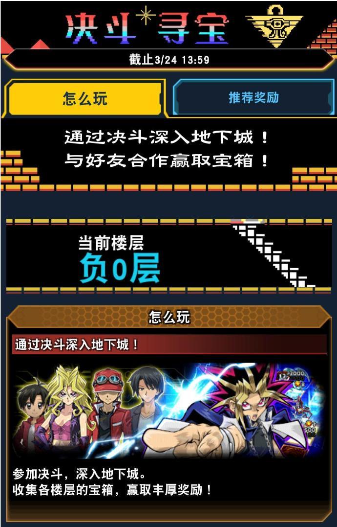 致全体决斗者: 新活动揭晓!决斗寻宝活动现已开启! 通过决斗深入地下城,赢取大量宝箱! 宝箱内含宝石和卡片兑换券! 打开宝箱,收获惊喜! 活动时间:2021-03-18 14:00至2021-03-24 14:00:00