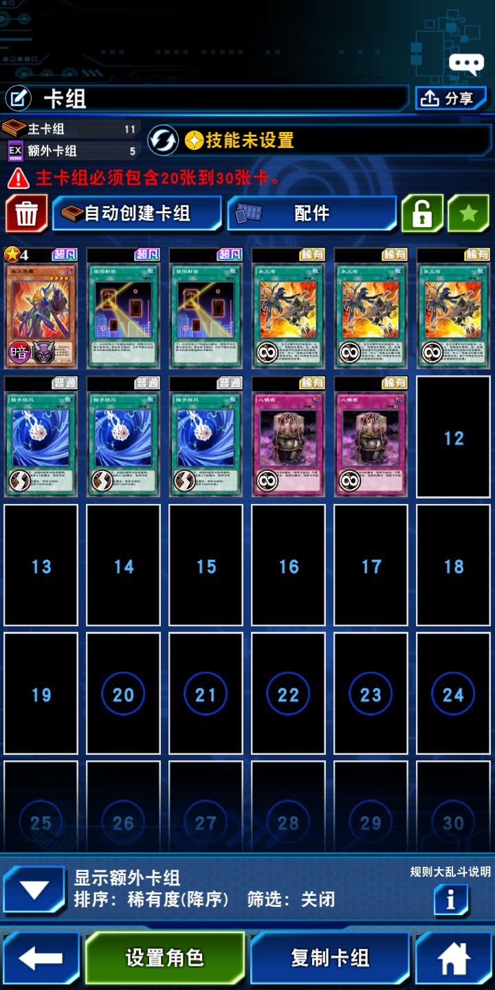 这是一个爆发流的卡组,手牌、运气好的情况下可以一回合3只超量怪兽 角色技能推荐:生命α、叠放控制(这个技能目前好像还没出) 需要抽的卡盒: 第38弹 流星轨迹 卡盒 抽2~3轮 (运气非全保底1~1.5万钻) 下面是需要抽的卡 这张卡需要2~3张,抽到就可以重置卡盒,开始下一轮抽卡 (萌新注意,抽下面的卡不用重置卡盒) 这两张卡都需要3张 这张卡需要2~3张 这2张卡都需要3张(萌新前期没