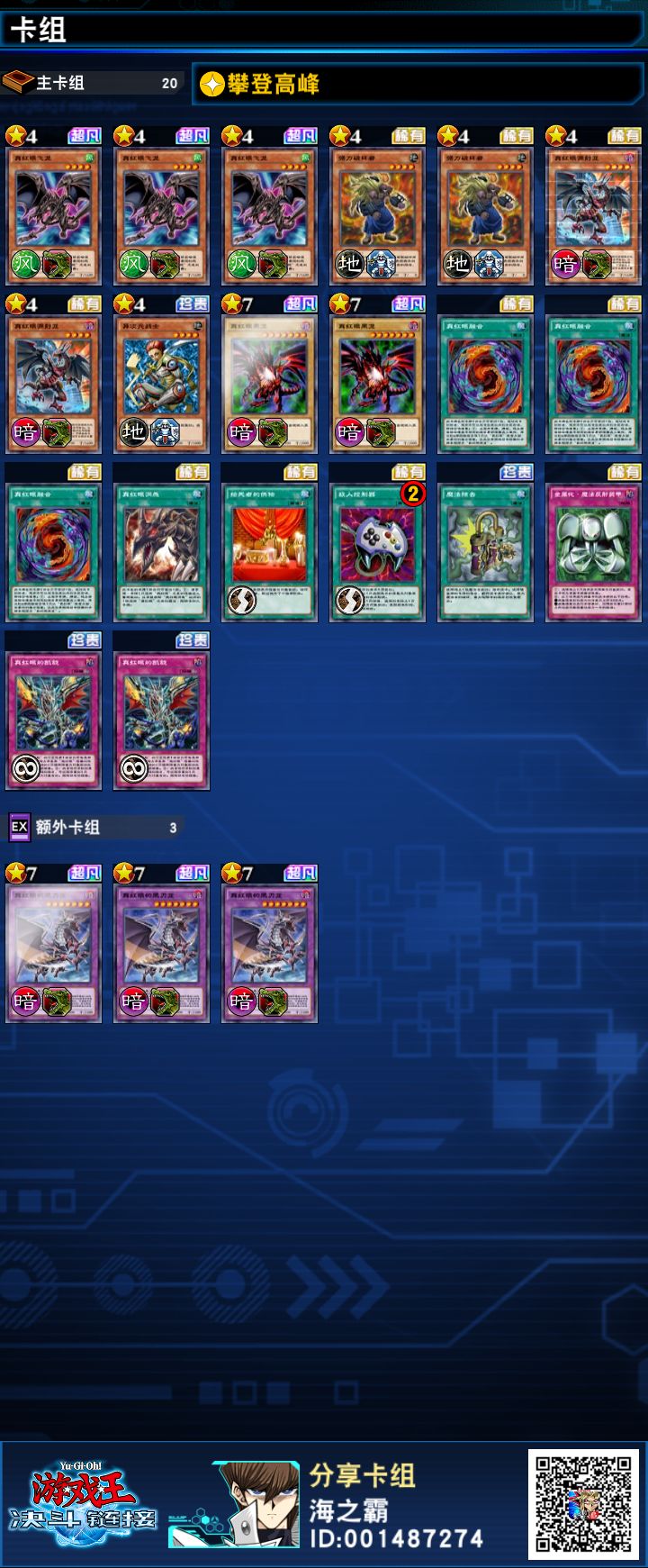 人物技能生命值增加α优先,其次攀登高峰 卡组构成: 怪兽卡: 翼神龙*1 元素英雄 烈焰侠*1 心眼的女神*1 正义的伙伴*1 青眼白龙*2 青眼亚白龙*1 青眼双爆烈龙*1 真红眼飞龙*1 真红眼黑龙*1 真红眼溯刻龙*1 真红眼的黑刃龙*1 超魔导骑士—黑魔导骑兵*1 魔法卡: 真红眼融合*1 真红眼看破*1 融合*1 融合回收*1 陷阱卡: 附锁链的回力标*1 正统的血统*1 神之恩惠*1 真