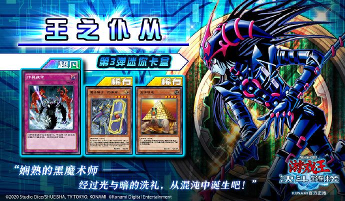 暗游戏王牌怪兽「混沌的黑魔术师」、不死族强化卡「金字塔龟」、魔法师族强化卡「律法的魔导书」以及强力陷阱卡「炸裂装甲」登场!全卡表请见→游戏内已开启期间限定促销活动,并且登录游戏即送500宝石!具体活动内容请前往游戏内查看。“娴熟的黑魔术师——经过光与暗的洗礼,从混沌中诞生吧!”
