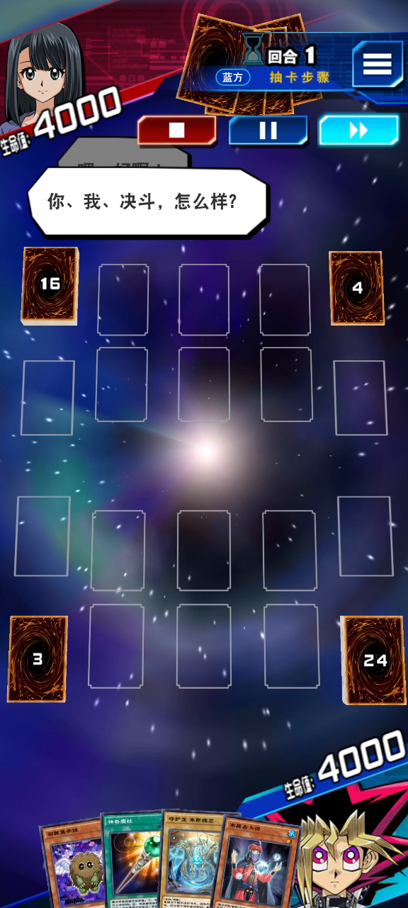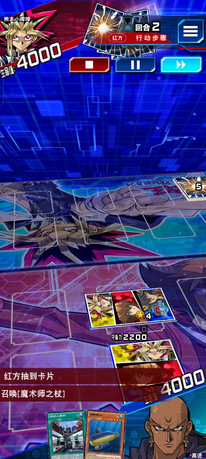 😂我手里没卡了基本可以算gg了,因为我除了几个4星,还有一个暗黑骑士盖亚王,其他都是高星或者仪式融合,一回合一卡除了防守没其他办法了,最后多谢大佬手下留情😋