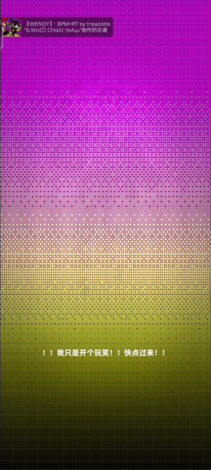 哈哈🤣👉😔菜鸡玩意儿破防了吧 菜就多练😏👐 这个游戏美妙欢快的色彩令我弱视被治疗的同时也有了光敏性癫痫,我打异象都没你这么闪😔我已目害,感觉不好 律动轨迹真挺像你的🤗 但你的律动模式为什么不是全屏判定呃呃呃啊啊啊啊啊啊啊啊你知不知道我回游你不是全屏判定我多难受吗😨😠 (假的,这游戏真好,小程序版本怎么没了??(尖叫嘶吼哭泣扭曲阴暗爬行)
