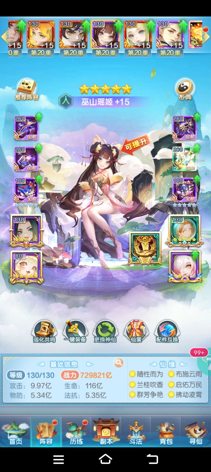 神仙方面,所有的神仙都能白拿,每天给的资源也多,每周记得把龙神打满基本就够了然后出活动的时候买就行了。就上满本阵营的神仙基本就是一队了,也没太多其他的搭配,