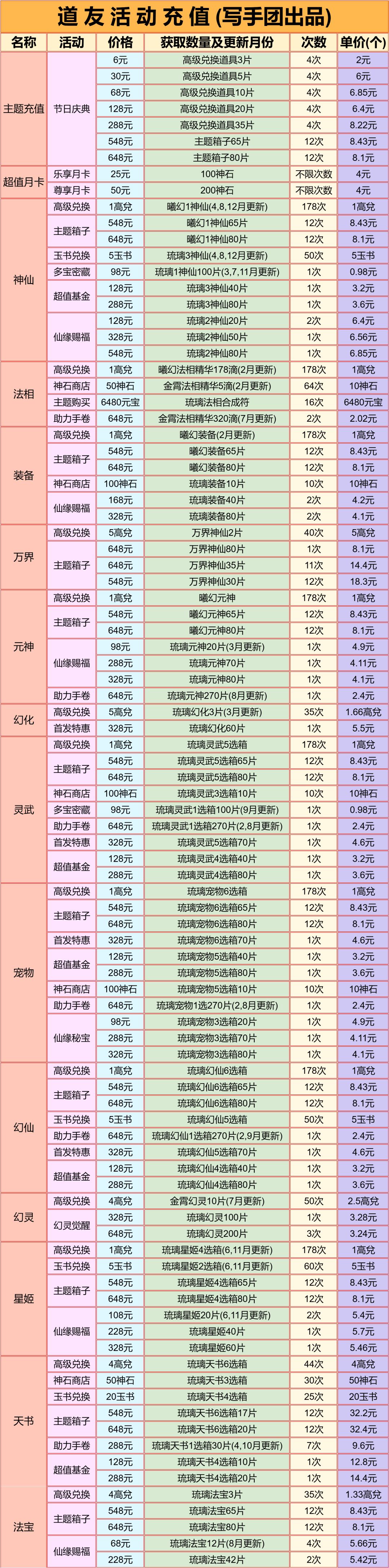 整理下每期活动所需花费的元宝,和各种氪金项对比(12.29更新)