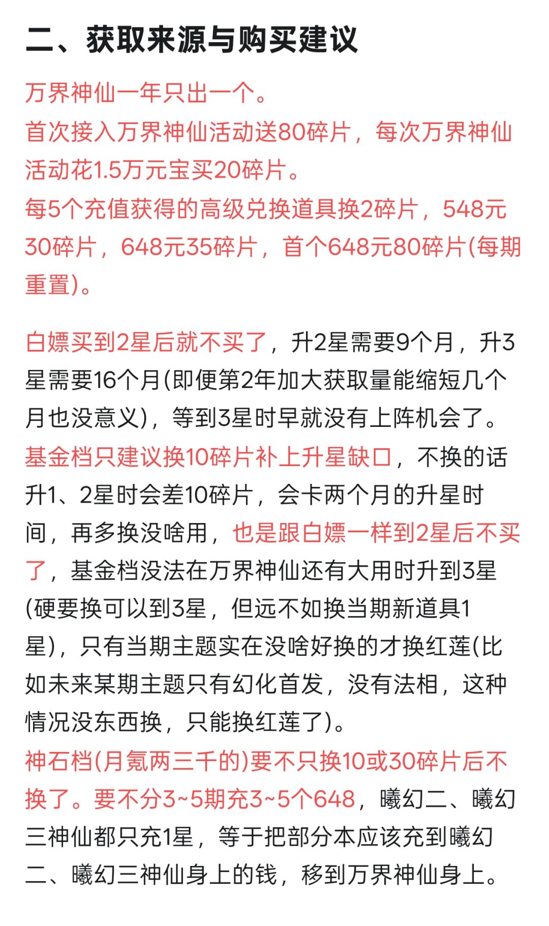 一、神石 【作用】神石活动时购买次新道具; 【说明】任意版本都能购买当时的次新道具。 二、变装/仙裳 【作用】(1)美美哒(2)全属性加成; 【说明】激活即生效,没有上阵限制。 【氪金建议】 跨度长的活动,注意算好累充,尽量多拿几次200累充的神石。 【法相最值氪!!!】