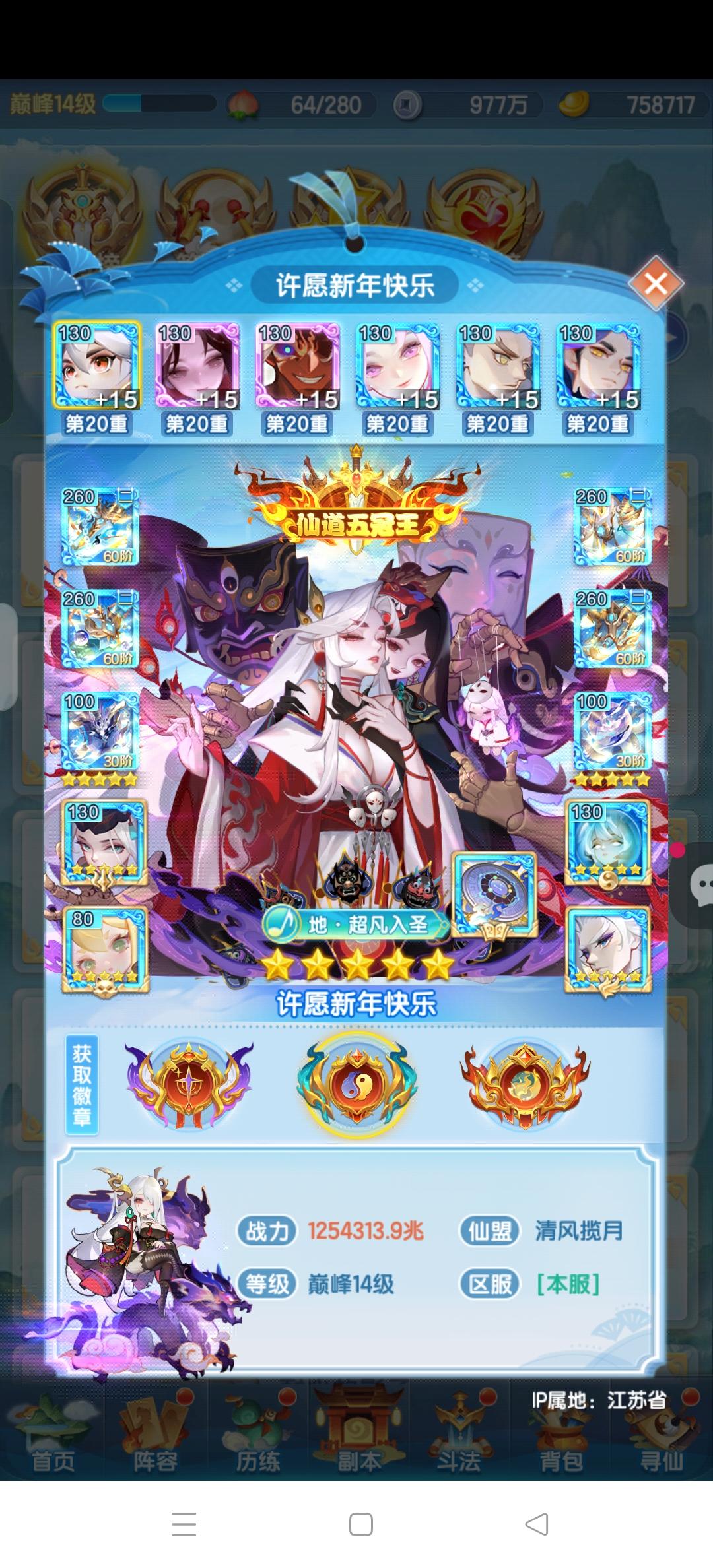 仙帝五冠王咯,还有徽章也毕业了,真的很帅,道友可以养老咯