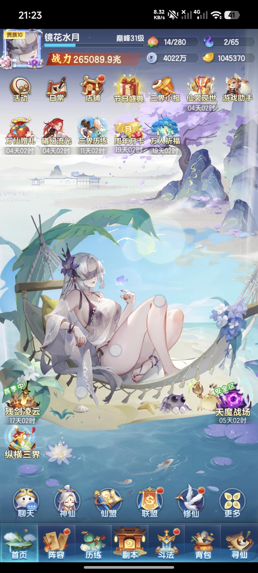 元宝:104.5w战力:26.5w兆等级:巅峰31级日常提升