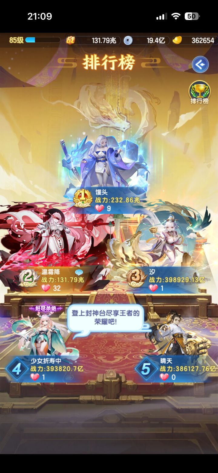 普通服零氪15天战力来到7.1万亿元宝45万目标100兆