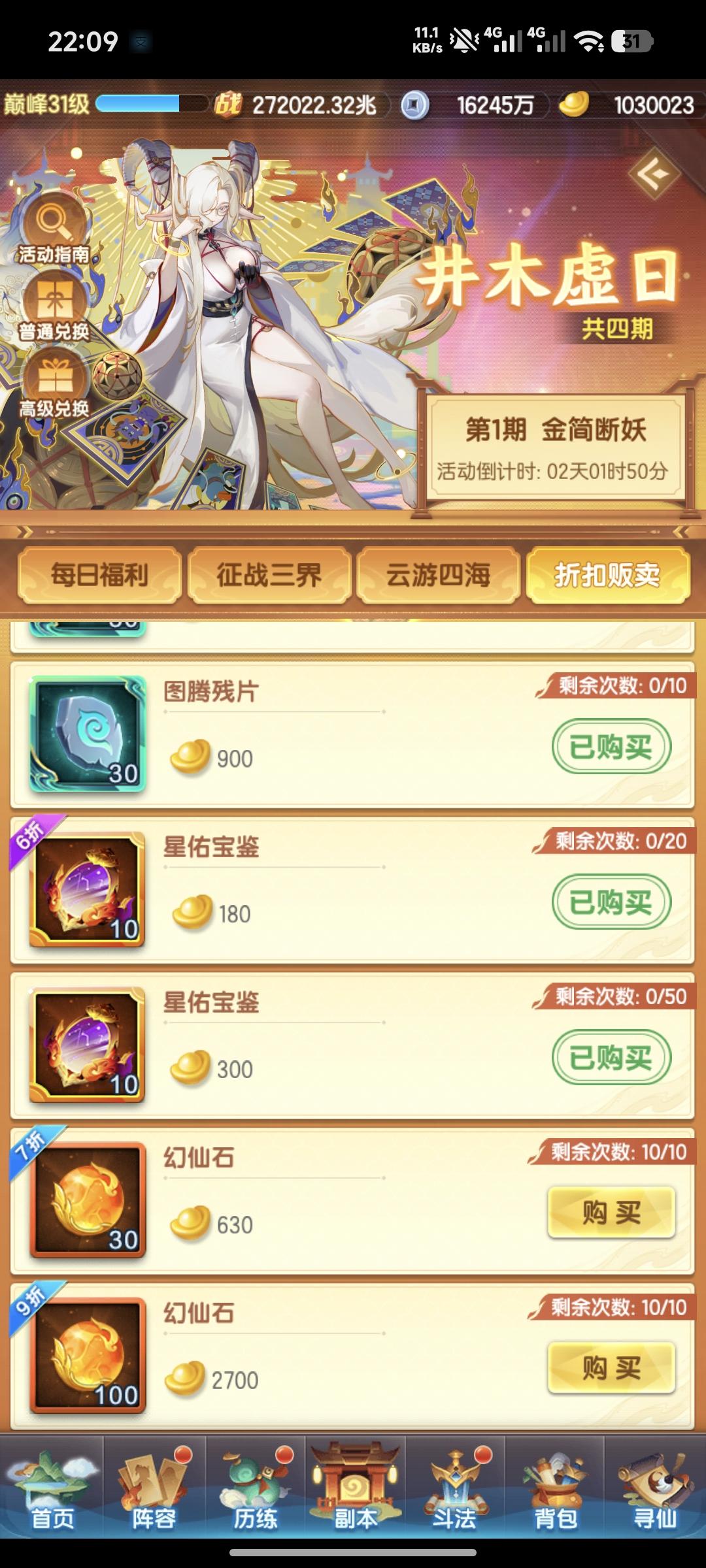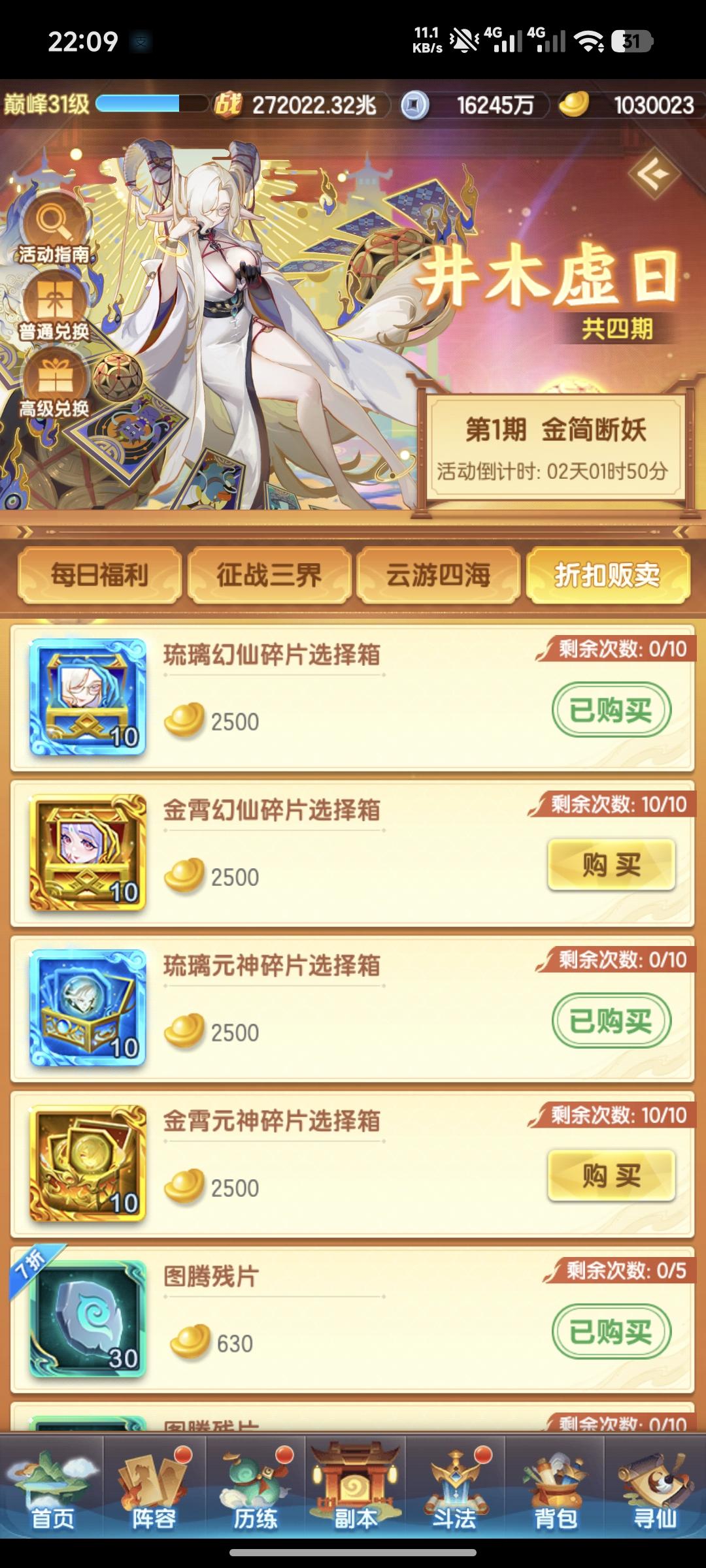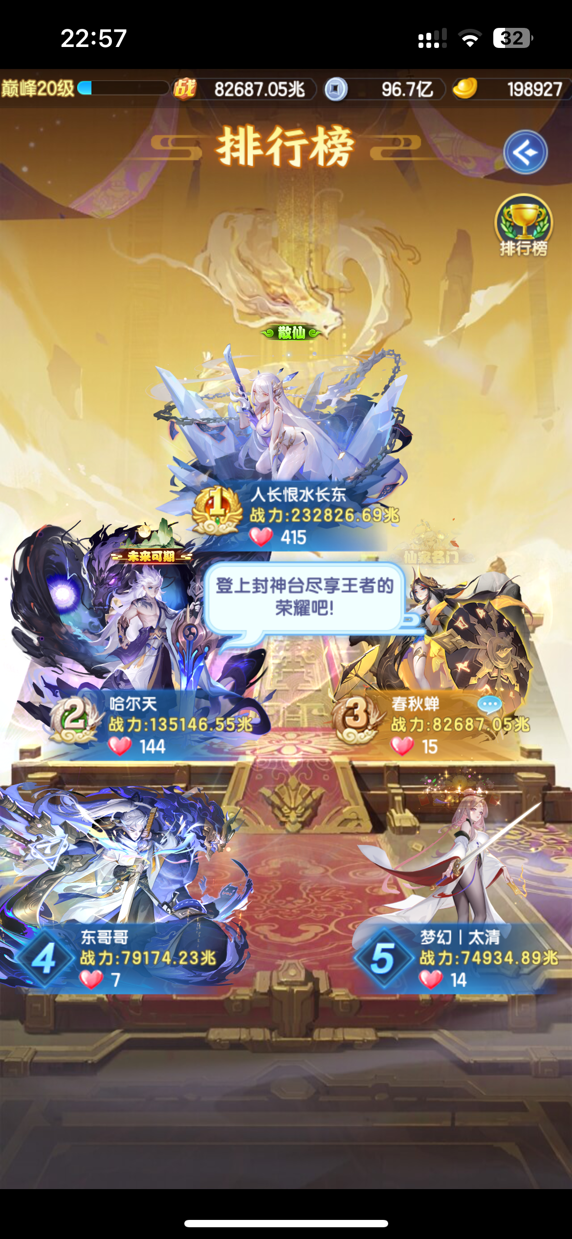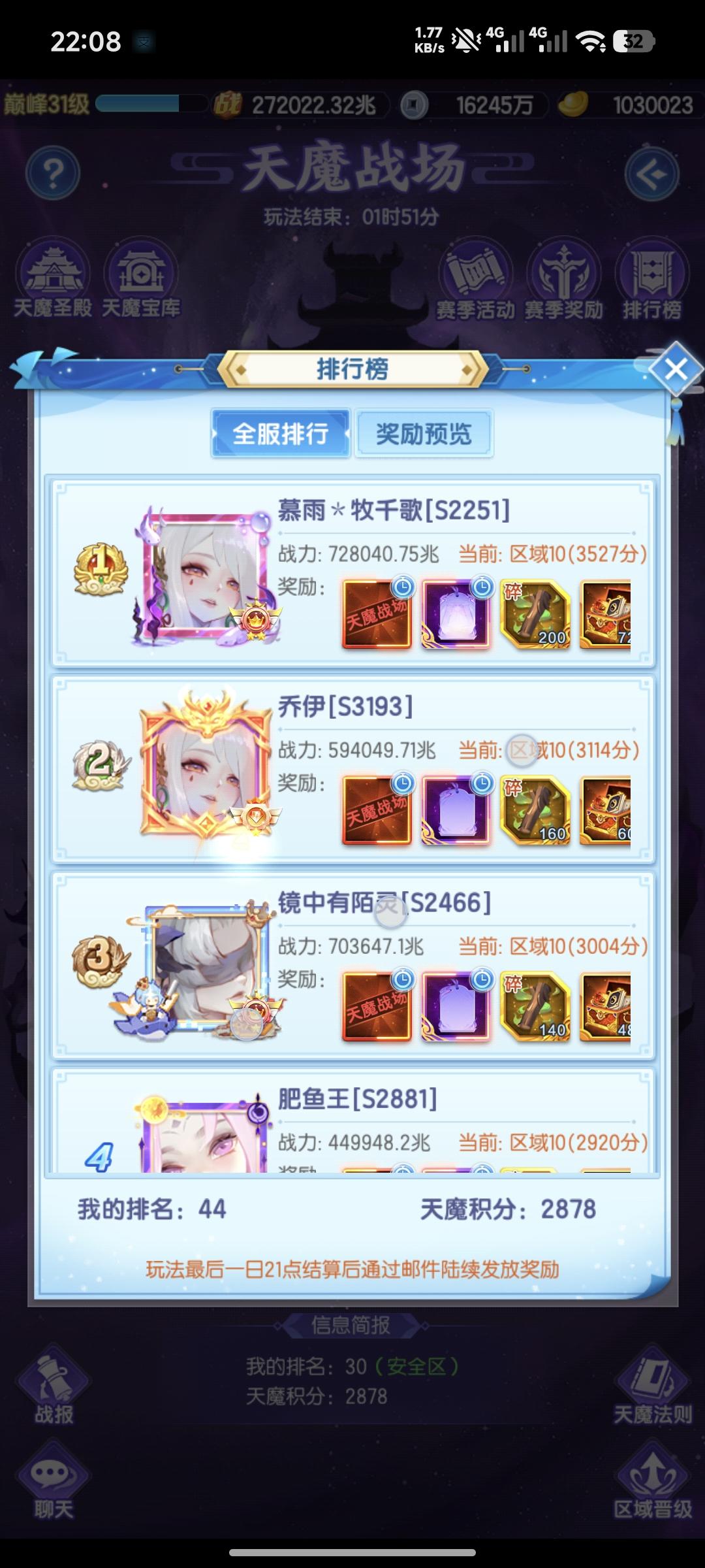 元宝:103w战力:27.2w兆等级:巅峰31级幻仙元神主题,元宝消耗8w+1.8w,一星白泽,琉璃元神332222,天魔44名