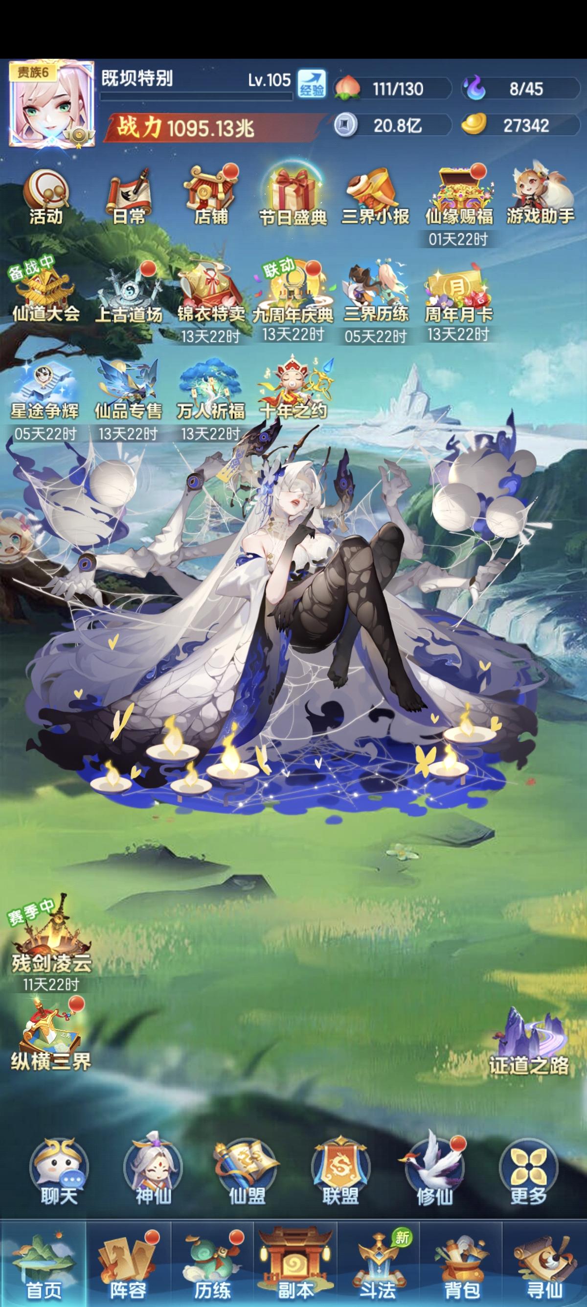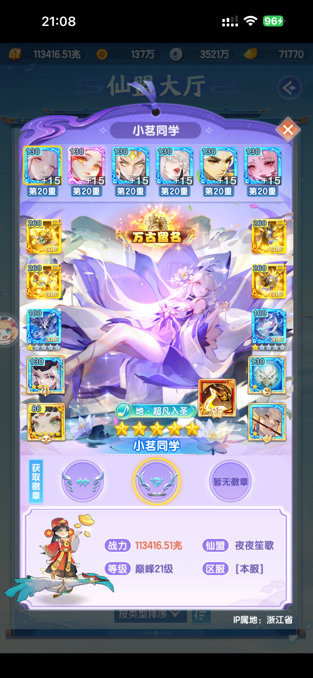 元宝:103w战力:27.2w兆等级:巅峰31级幻仙元神主题,元宝消耗8w+1.8w,一星白泽,琉璃元神332222,天魔44名