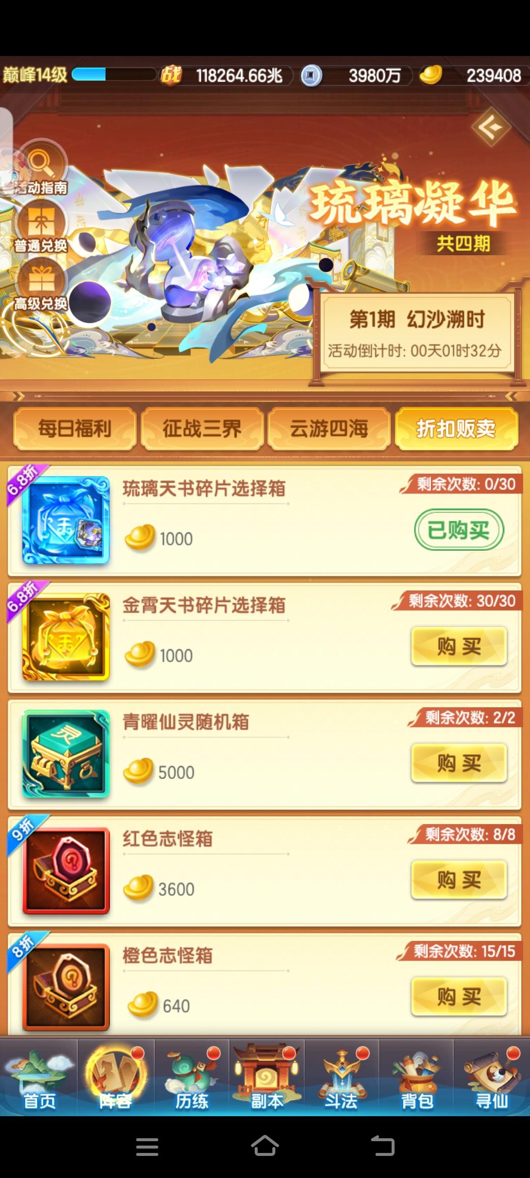 等级:71战力:4.4w亿元宝:46w氪度:498马上出村了,攒的元宝少了点,寻仙丹会仙缘三个活动都花了元宝抽奖励。 月卡纠结了一下感觉不长征法相没必要氪,还是没氪。我的赤法总是打不过别人抽到金霄神仙的紫法,只能等新神仙了。 竞武大会运气有点差了,明明是战力第9,第一次竞武大会32强,第二次16强。助威4次全错。