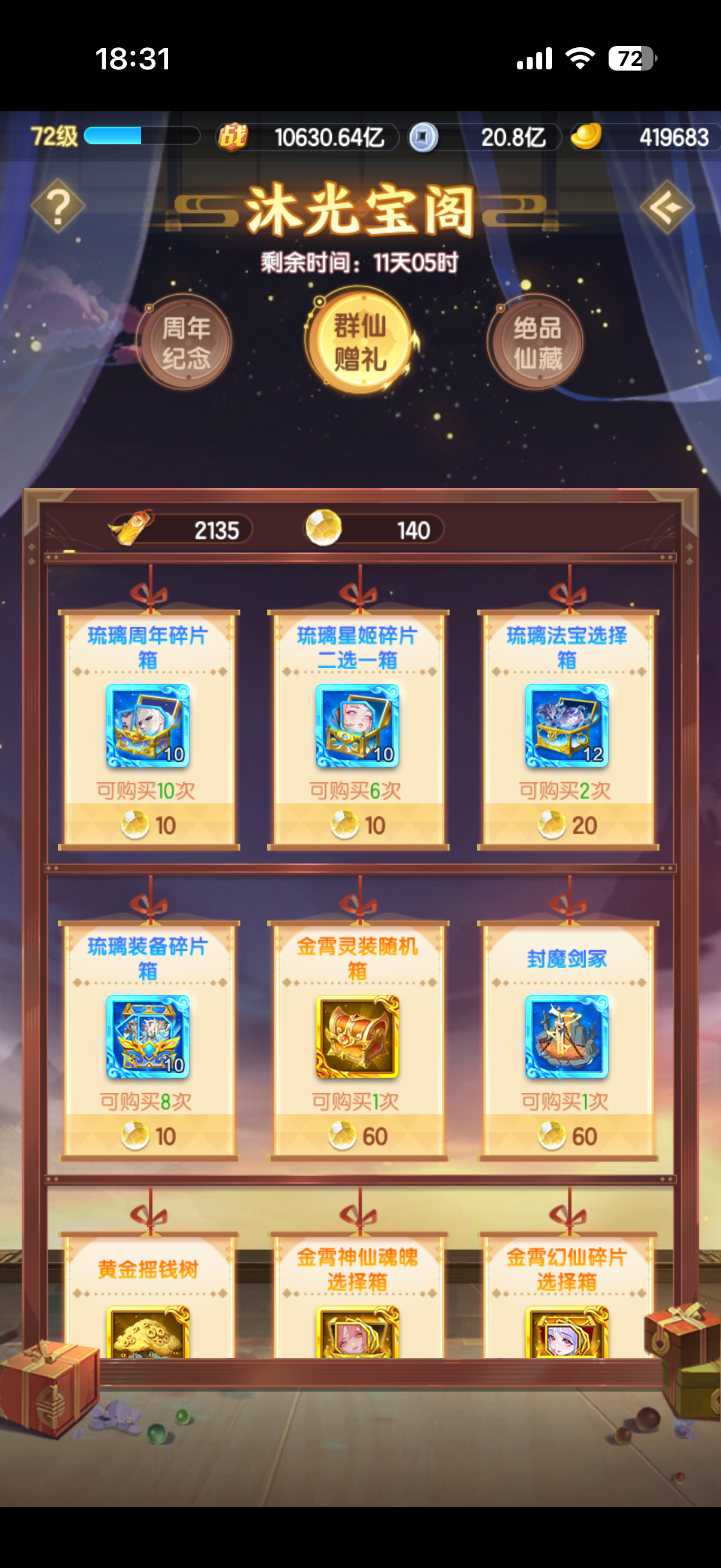 第二天5000达成,后续我是先买金仙过渡还是等琉璃,好久没玩过了不知道最新版本更新怎么样了