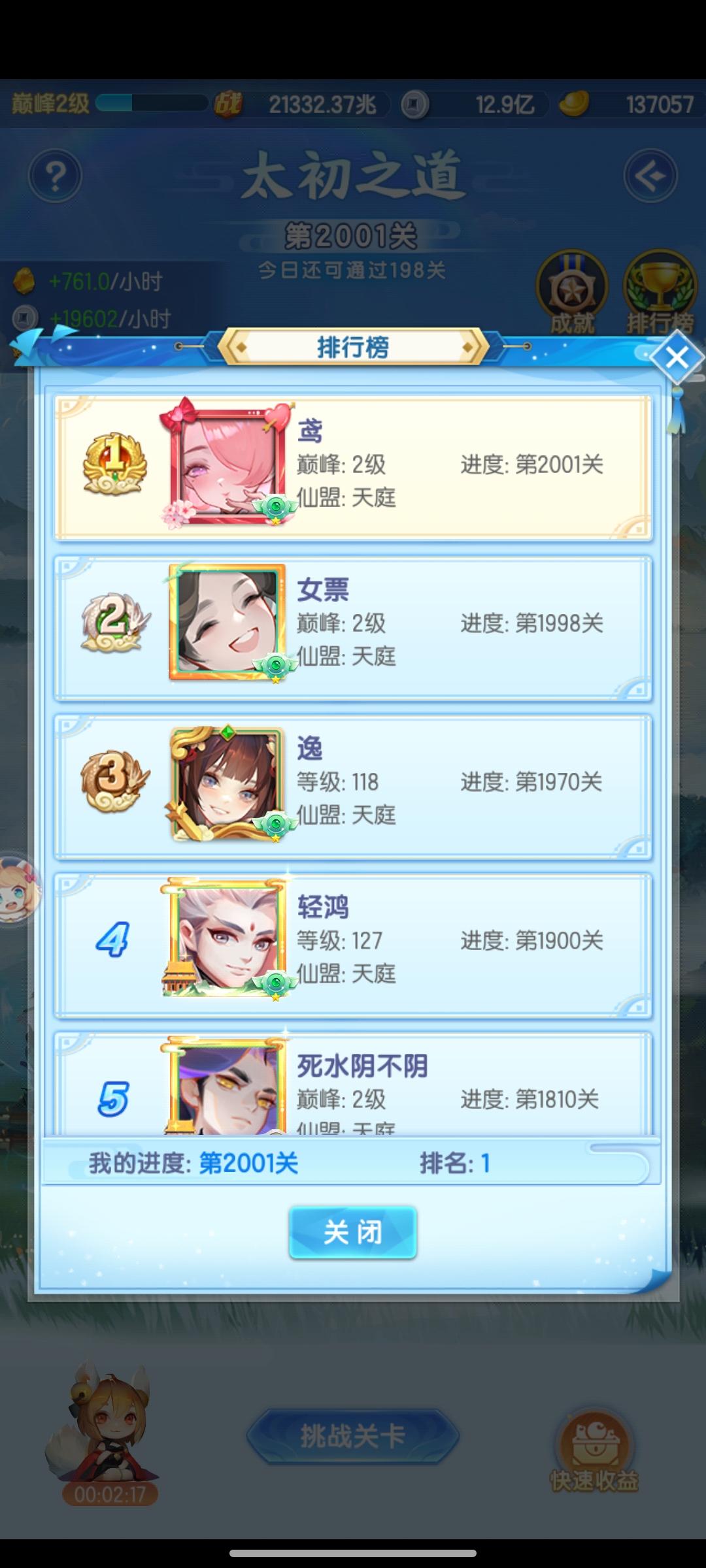 今天是一个特殊的日子马假期第二天(bushi各位大佬元旦都在做什么呢?好吧回到道友今天的战力好像没有变化而且我道场已经忘了打三次了感觉已经落后一大截了(明天一定得打了雷霆战机第四关也是通过了不过无尽只能打五百分好像后天是幻化活动我的元宝又要腰斩了希望这次不要断档了明天见吧各位大佬