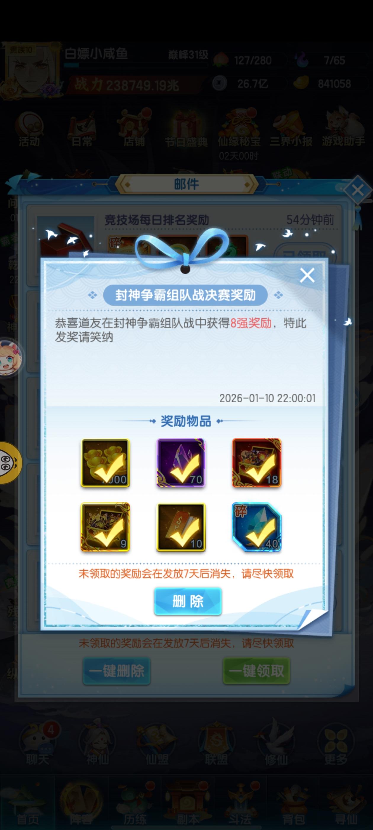 元宝:115w战力:27.5w兆等级:巅峰32级日常提升,又忘记打晶脉了