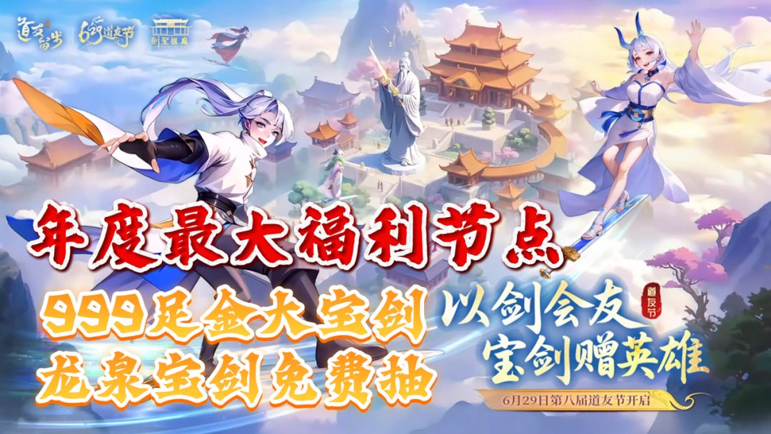 年度福利最大节点来袭,联动剑圣祖庭,新玩法新活动量大管饱,社区抽999足金大宝剑! #道友请留步