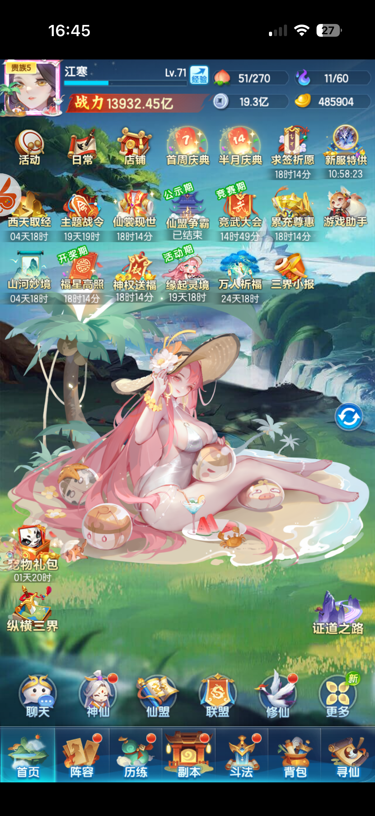终于还有两天就要出村啦,这两天感觉发展比较乏力了,主要是因为到了70级之后升级很困难,一级需要45万经验,平均需要1600体力,折合64个体力丹,一天最多升1-2级,所以基本没啥新的功能解锁,箱子也都没有整的可以开的,不持续充钱加战力也很慢。但应该马上出村能赶上宠物和新神仙出来,期待一下但应该最后两天要囤点体力,是不是得从今天开始了啊,不知道50个丹够不够呢