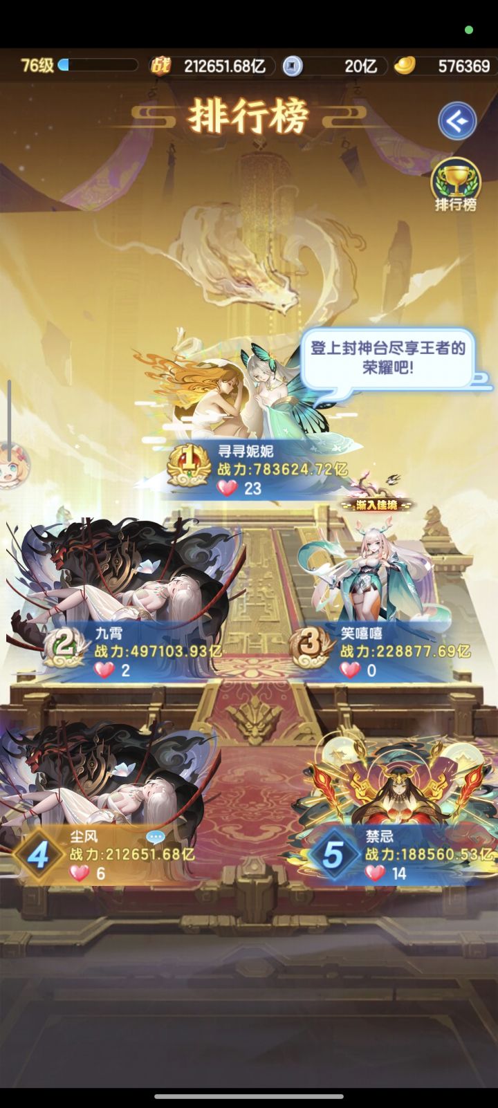昨天晚上公司聚餐,喝了不少9,回家已经神志不清了,所以昨天的记录贴没发。今天终于出村了,战力涨了10w亿左右,出村接的发相主题,提升不是不大,元宝买了琉璃和金宵星姬,还有太虚神晶,活动任务是每天都刷新的吗,不是的话好像资源换不完了。目前还是区里战力第四,前二完全碰瓷不了,第三打不过我,山河排第四。