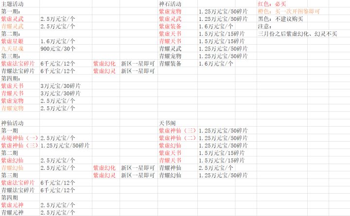 名词解释:出村:第11天会接全服活动,就叫做出村(7天完后有个求签活动,求签活动完了后就是出村)均养:资源平摊到每个神仙身上极限:资源集中在一个神仙身上首战:战区开的第一个服(很多跨服以战区为单位,所以第一个服先玩先出村先跟全服活动有优势)尾区:战区的倒数两三个服(相比首战差不多错过了7、8天,这游戏三天一轮活动,相比首战就少了两到三次活动)硬件:天书,法相,幻仙,宠物,灵武,元神,星