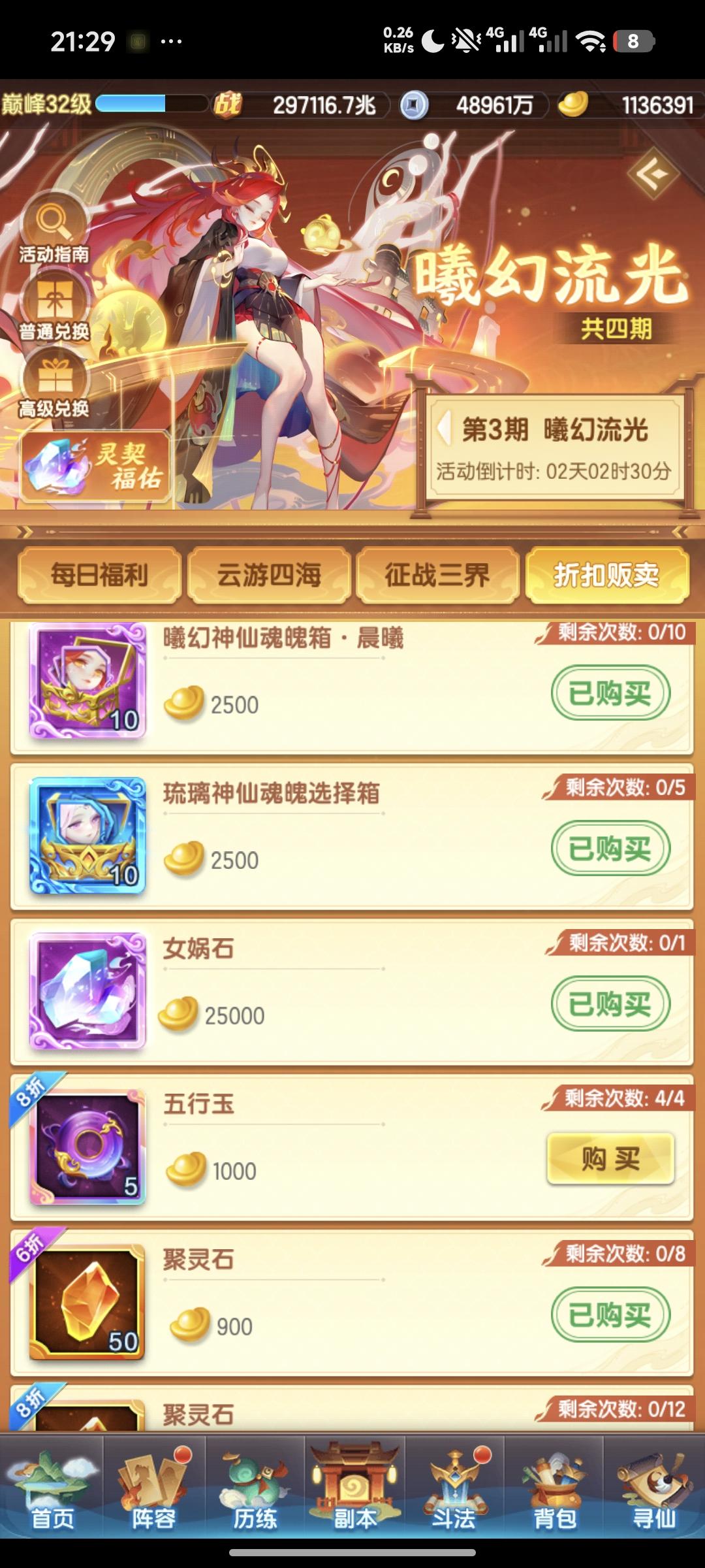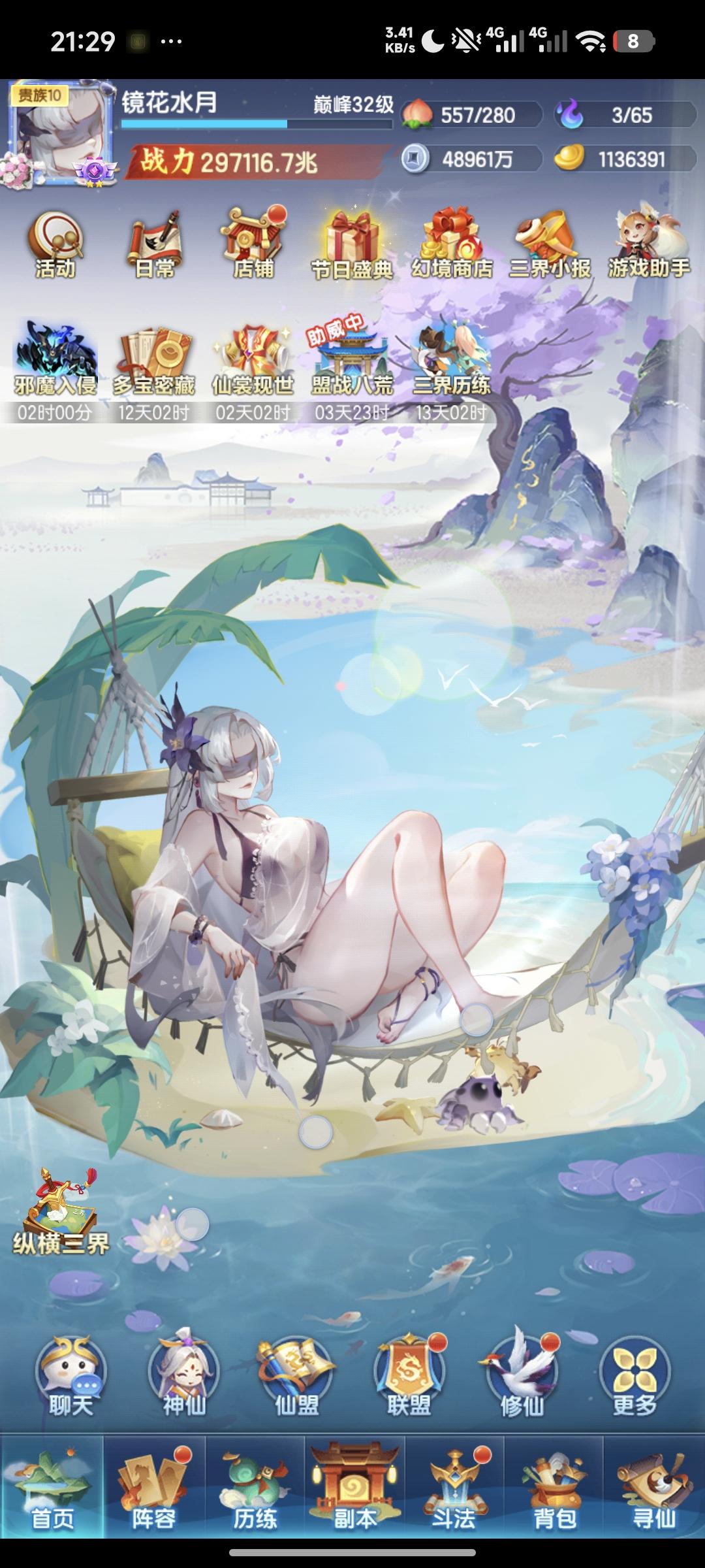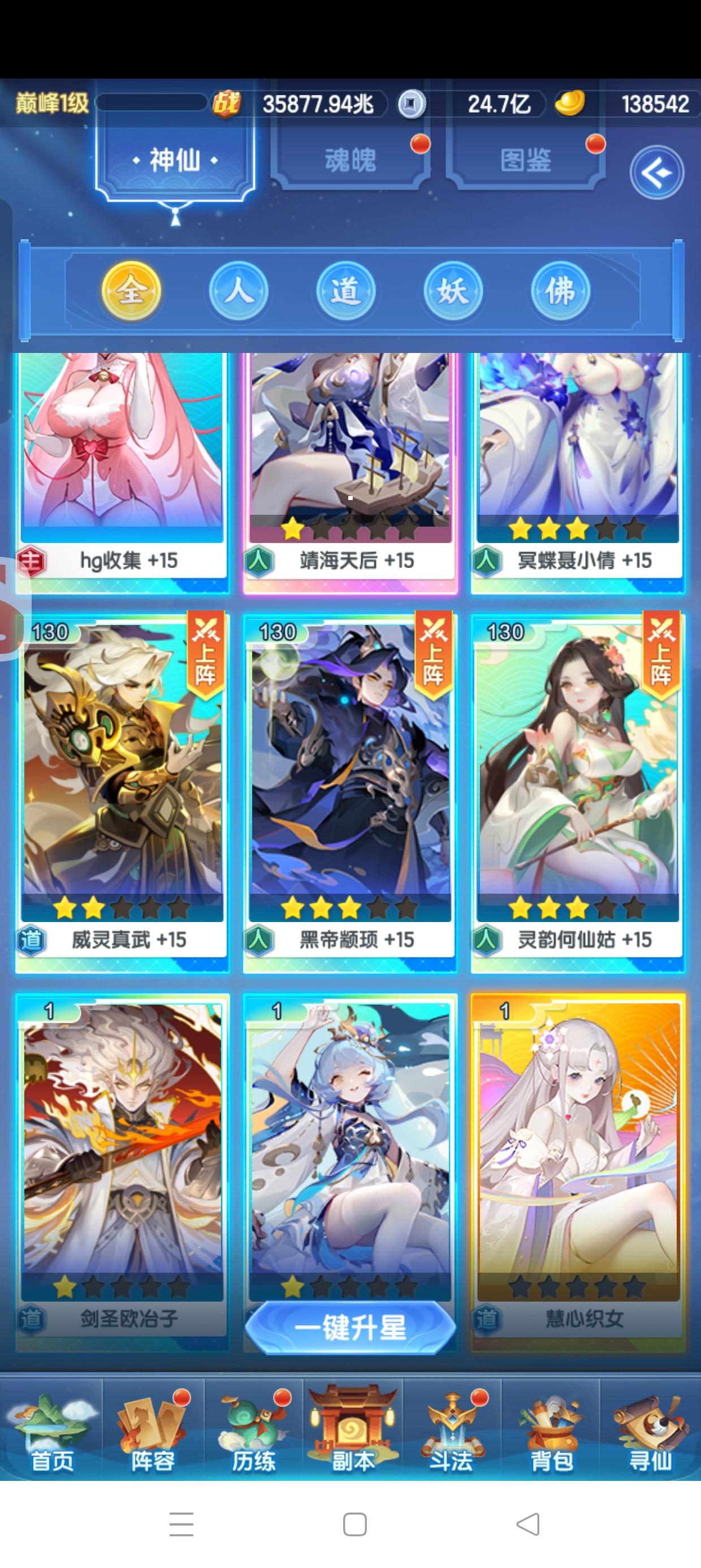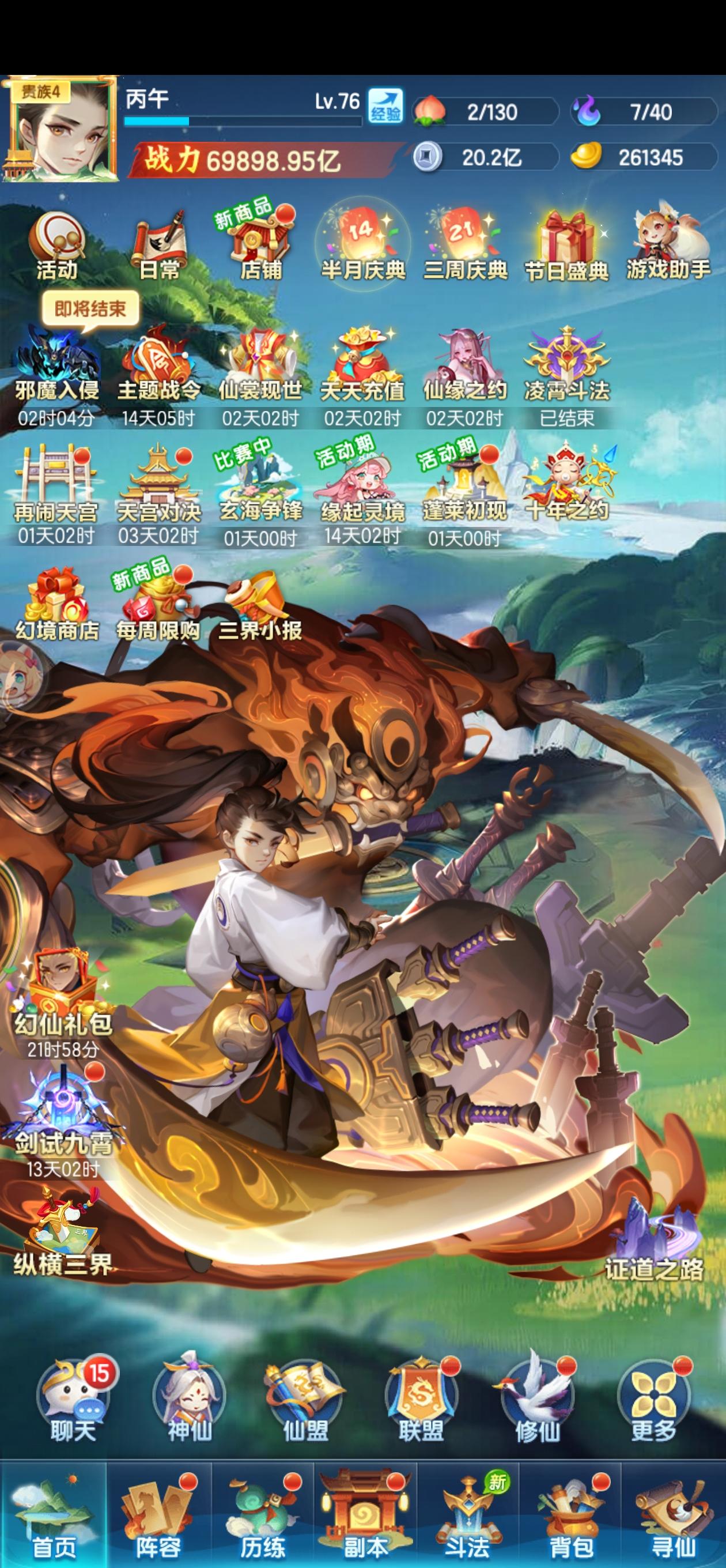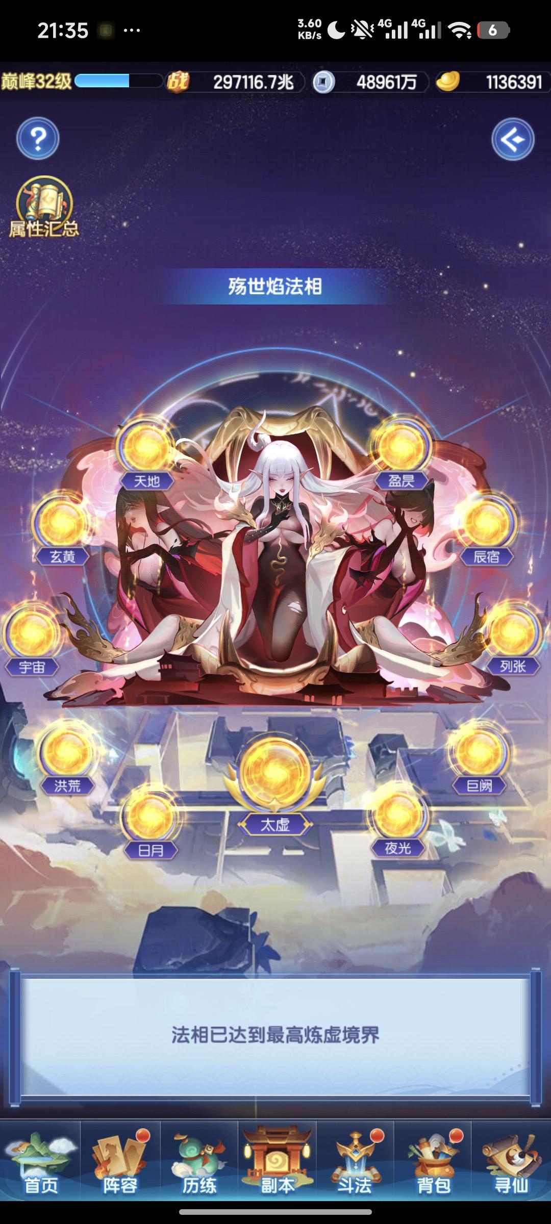 元宝:113.6w战力:29.7w兆等级:巅峰32级神仙主题,元宝消耗8.4w+1.8w,人道转妖道,一星羲和,法相炼虚毕业,快30w兆啦