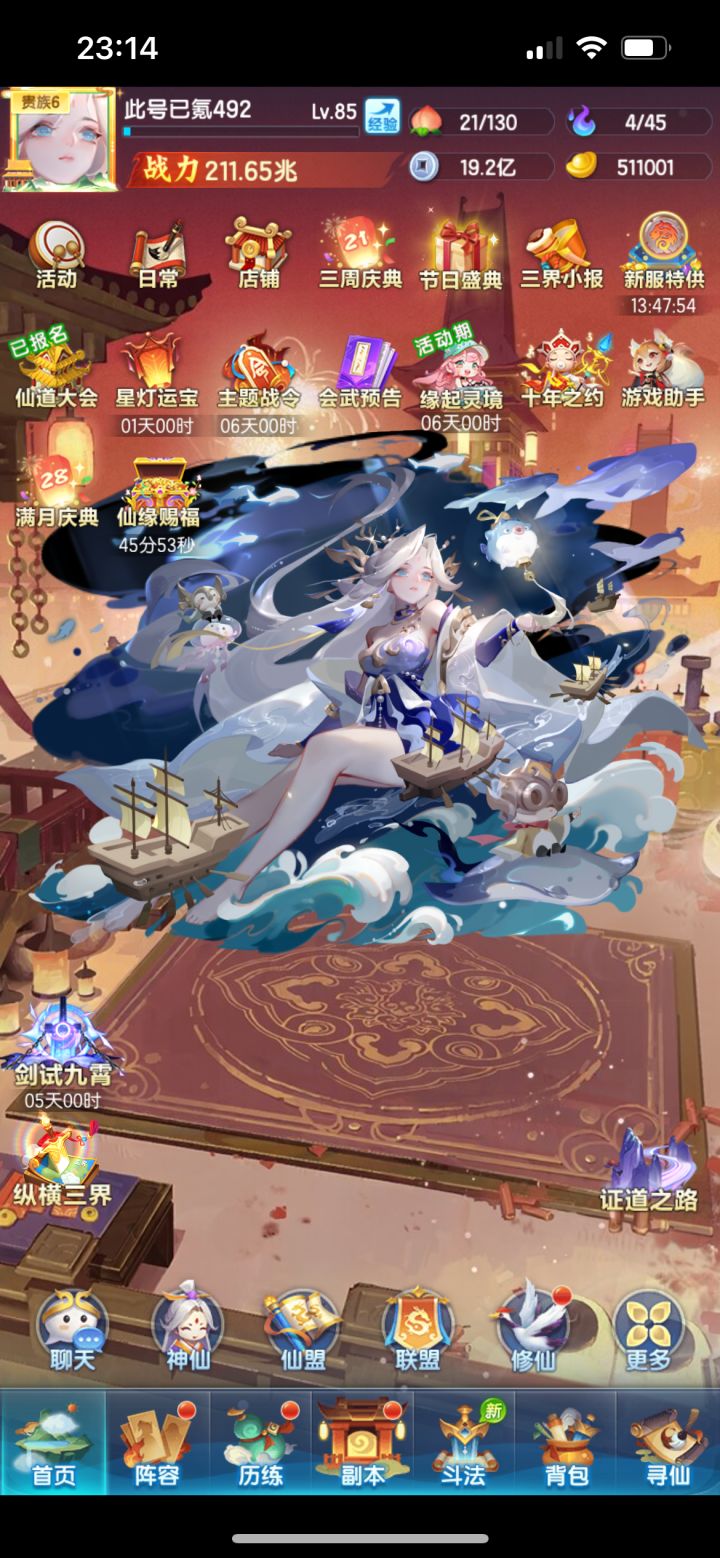 第一次玩道友,也是今天才了解到什么是首战服,然后发现自己服是战区尾区了,战区的第六个区,后面还有两个区。由于是尾区,区里感觉人挺少的,频道聊天的人也很少,创了个群进来聊天的也比较少。前几天在论坛发帖求助,听了各位大佬的建议后,拉满了法相手卷,目前是区里第四个金法,一共有5个。目前战力排行第5,等级排行第8,在我前面的基本都要70级了。今天升到了65级了,开了灵武,战力从3.8亿提到了4.2亿,