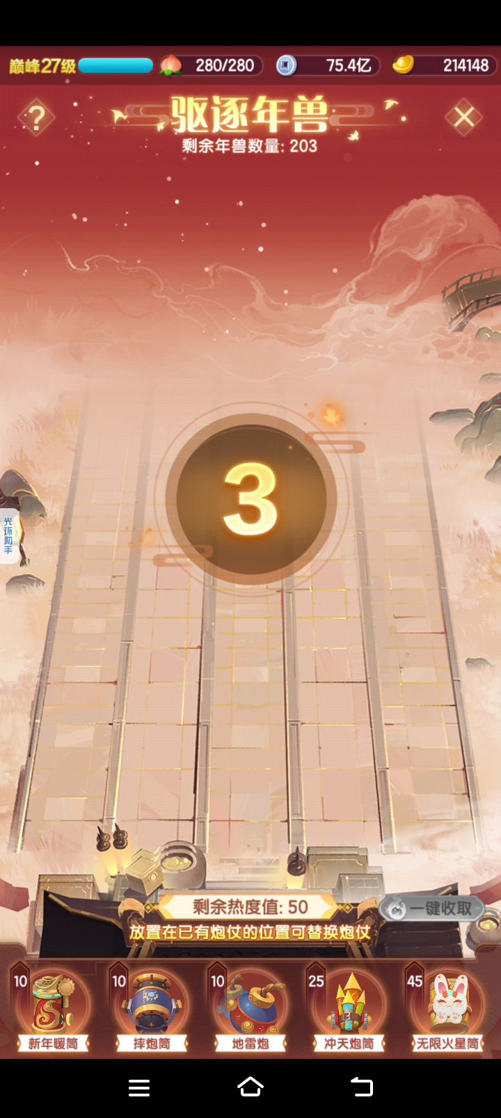 阳光一定要充足,前期多用炸弹排掉小年兽第一个火炮放第二格,550只年兽前都只需要1排火炮从550~570的时候要提前准备第二排火炮,土豆要没了及时补,阳光在剩余400只之前需要有800+ 过了400后着手准备3、4排冰、火炮,最后就3排火炮,两排冰炮(冰炮要在前面,不然可能会翻车)最后记得留点阳光怕不够用 前期阳光后三排随便放放哪里都可以我是方便放第一排我就放第一排了,打不过的多打几遍就过了,虽然