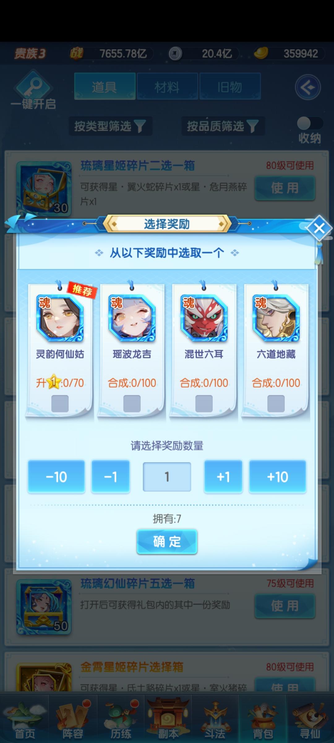 书阁换了两个琉璃神仙箱子,想问一下是开新的琉璃神仙还是给何仙姑升星,还是说三选箱不开留着?