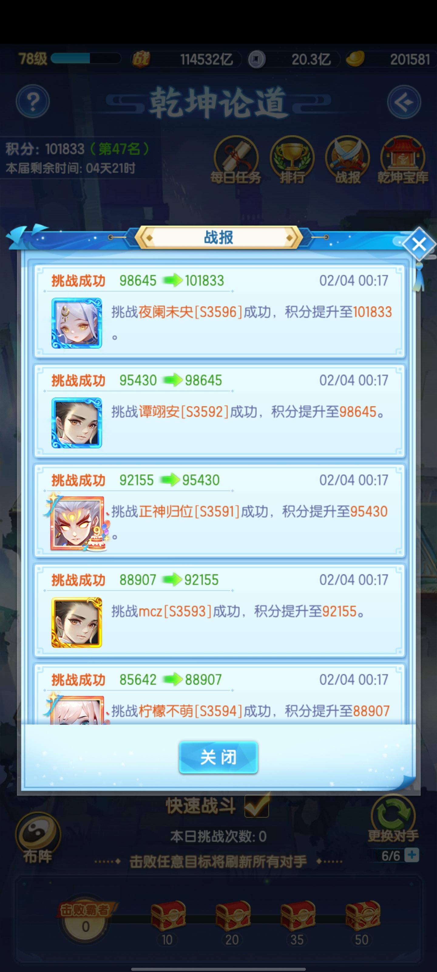今日主题:幻化+法宝角色名:空白等级:118战力:41155兆花费元宝:2.8w提升:日常元宝:56w角色名:八月七号等级:巅峰1战力:19325兆花费元宝:1.8w提升:日常元宝:31w角色名:八月七号一等级:巅峰1战力:19042兆花费元宝:1.8w提升:日常元宝:24w角色名:八月七号二等级:巅峰1战力:17537兆花费元宝:1.8w提升:日常元