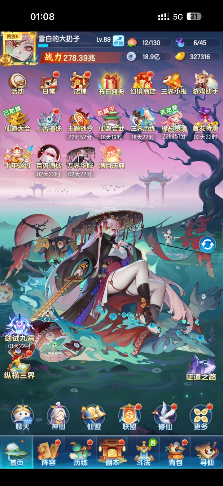 爽!今天也是成功升到87级,战力从230兆来到了238兆,元宝还剩44万。很可惜没能混进这次的仙道64强,哎呀只能说差一点点,不过问题不大,下次再努力~这次的仙道助威也是给到了冠军紫凰、亚军理莺、四强紫云和鼠鼠。但是也不好说,我看有说紫云打不过星的,还有说理莺可能是冠军的,那只能到最后看结果咯。目前战力排本区第12,战区竞技排50。还有今天在仙道频道遇到很多道友说我有点眼熟,看来每天发帖还是