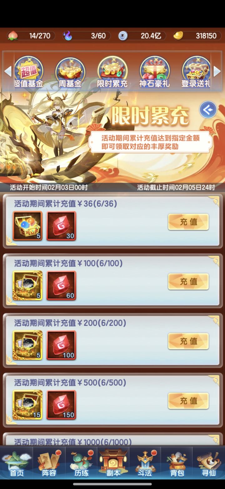 1:刚出村就接这垃圾活动,这超值基金还有必要氪吗,高兑没啥好东西啊2:限时累充和超值基金是不是绑定的,这俩多久来一次3:我现在开始长征法相,搞的是琉璃还是最新的幻曦,法相是啥活动可以拿神石买4:我刚出村元宝拿来买什么比较好(花了15w把幻化切满了)5:这个活动结束下个活动是啥