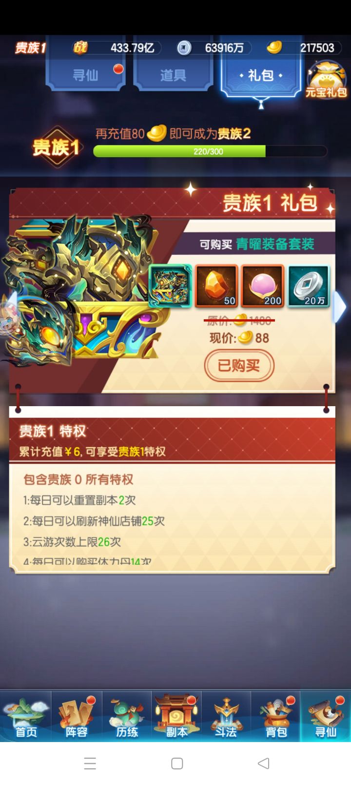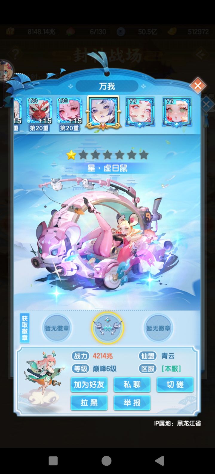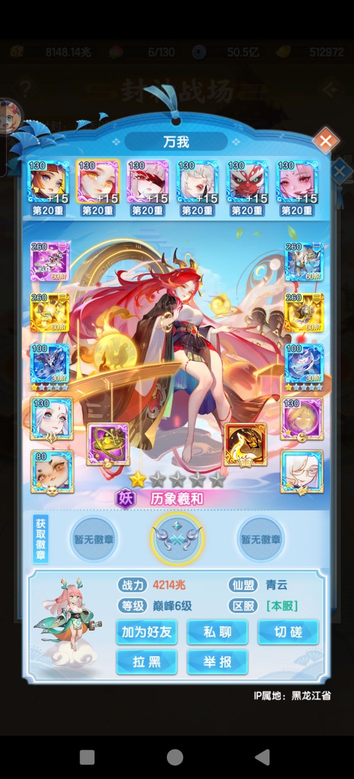 爽!今天成功拿到1星曦幻神仙,战力从565兆提升到了635兆,等级也来到了94级,等95级又能神仙进阶提升一波战力咯,元宝还剩39万。元宝有点不够用了,这期的女娲石还没买,感觉有点买不起了,准备跟太虚神晶一样等后面元宝宽裕了再慢慢买吧。目前战力排在本区46,竞技场打到了33名。下一期切幻化元宝估计会大残,只能走一步看一步咯,希望能稳住直达五星吧。OK那今天就这样,明天再见~