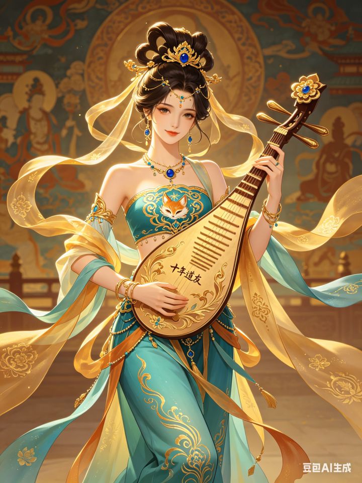 #道友十周年变装共创以「十年道友,弦歌不辍」为核心,打造一款融合敦煌飞天意境、十年时光印记与游戏IP情怀的女主十周年限定变装,既致敬游戏十年陪伴,又凸显女主灵动仙气的角色特质。 整体造型设计 1. 发型与发饰 - 保留女主标志性的双髻造型,升级为鎏金缠枝飞天髻:发髻以缠枝金纹缠绕,点缀十颗大小渐变的青金石珠(对应十年时光),发间垂落3缕渐变金纱飘带,飘带末端绣「十年道友」小篆暗纹,随风