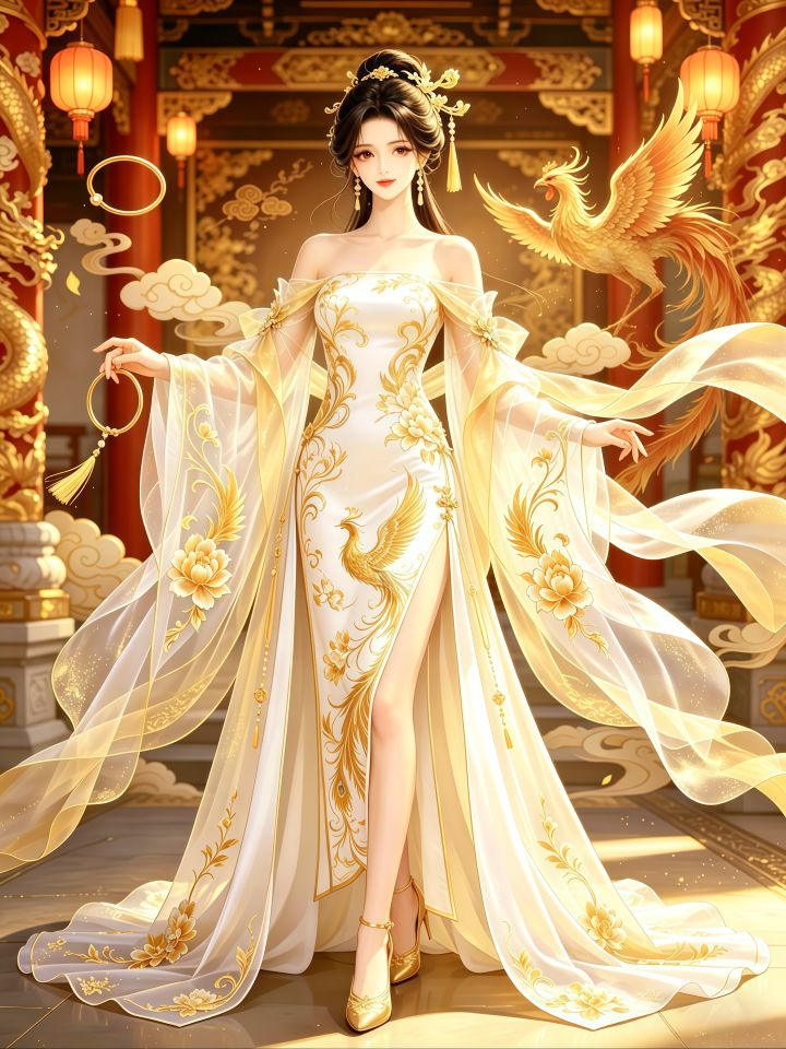 #道友十周年变装共创 凤凰神女沐浴在圣光中的凤凰神女,浴火重生;栖息在梧桐枝上,慵懒惬意的翻阅着这十年的记忆
